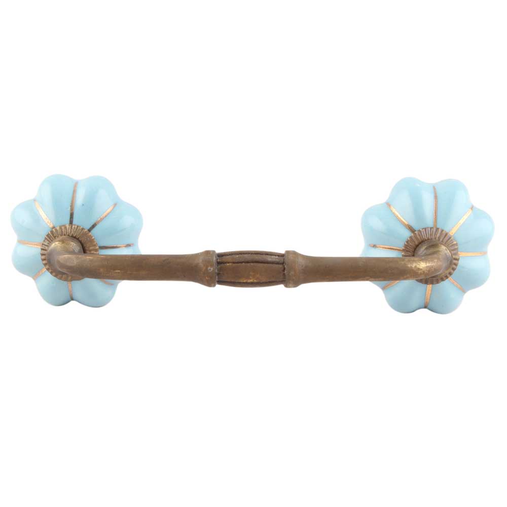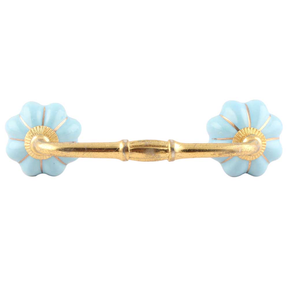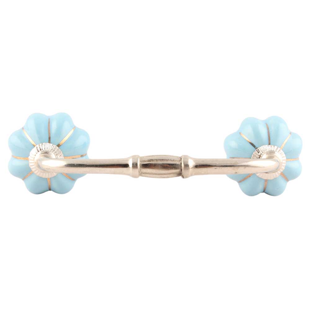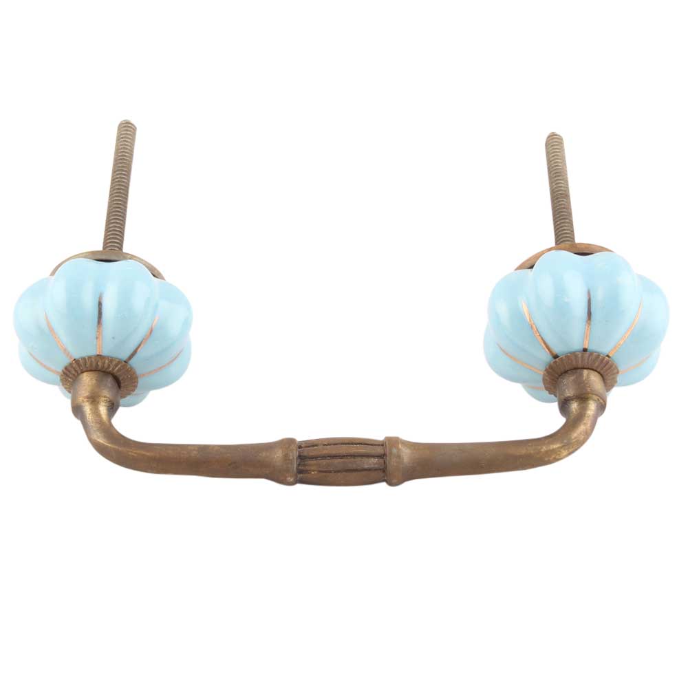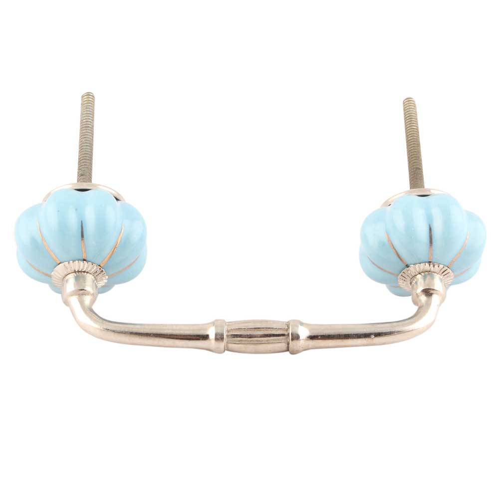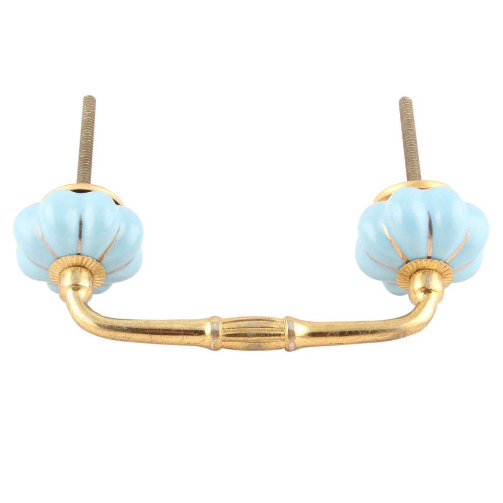 Turquoise With Golden Line Medium Ceramic Melon Bridge Handle. Ideal for Drawer, Dresser, Cabinet, Wardrobe, Cupboard and Almirah etc.
