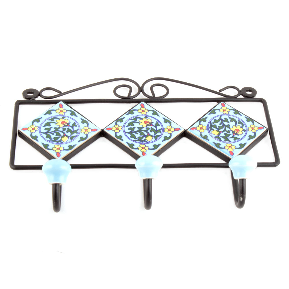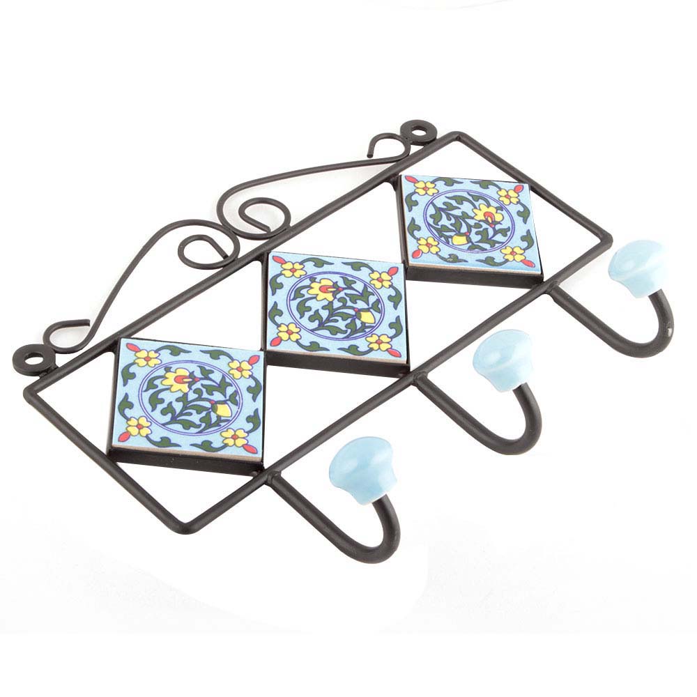 Turquoise With Green Yellow Flower Tiles Hooks