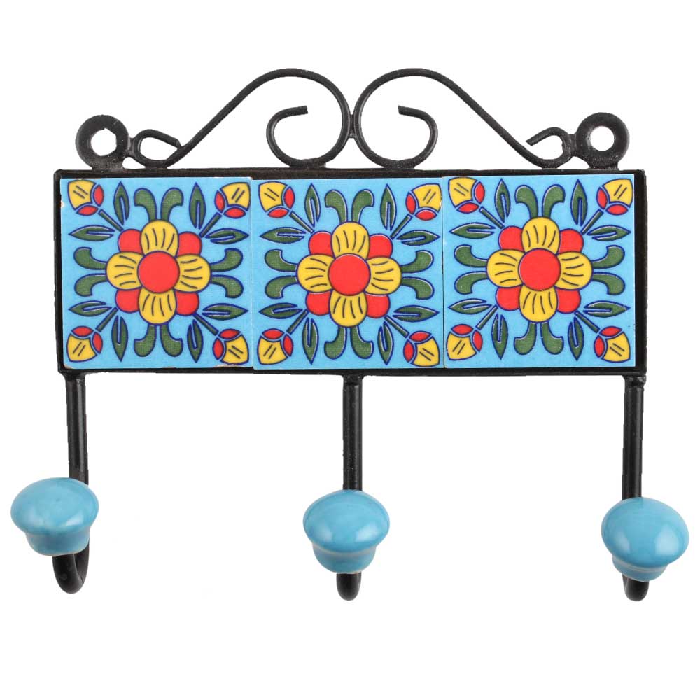 Turquoise Yellow Floral Tiles Hook