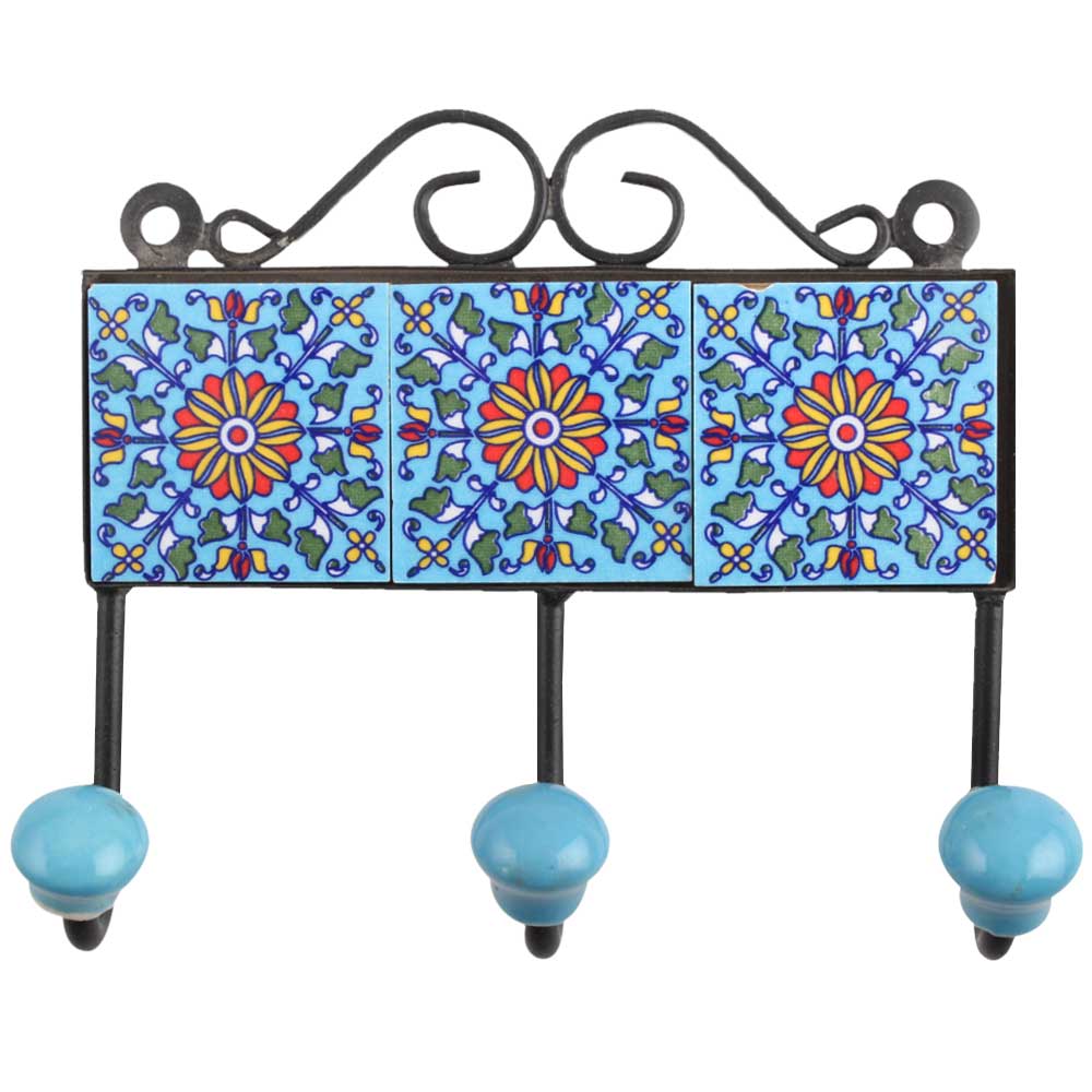 Turquoise Yellow Floral Tiles Hook
