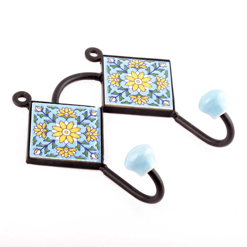 Turquoise Yellow Sunflower Tiles Hooks
