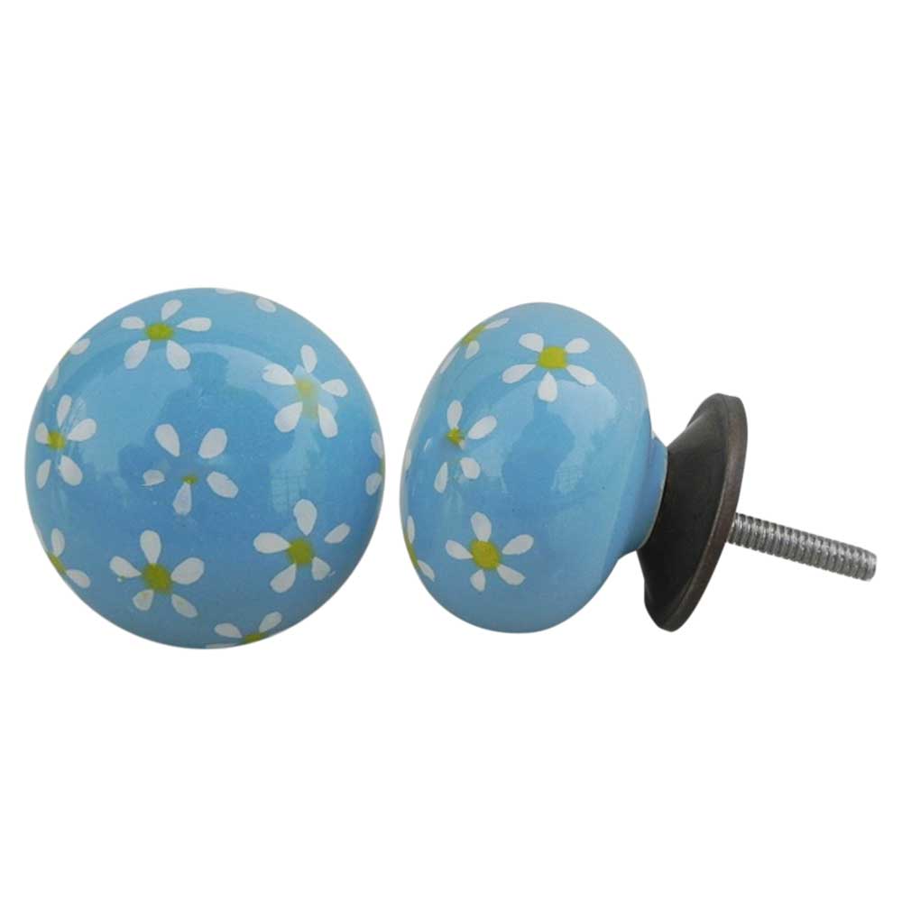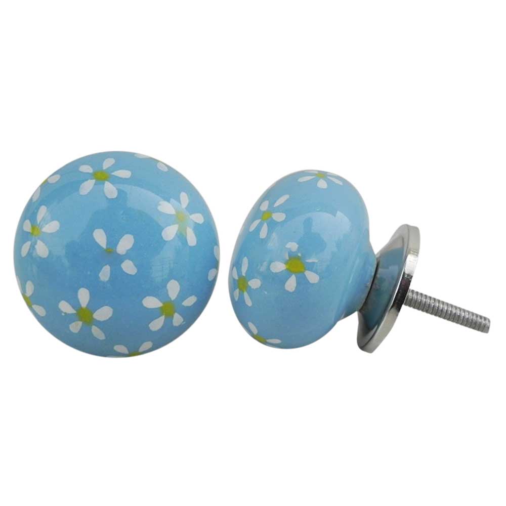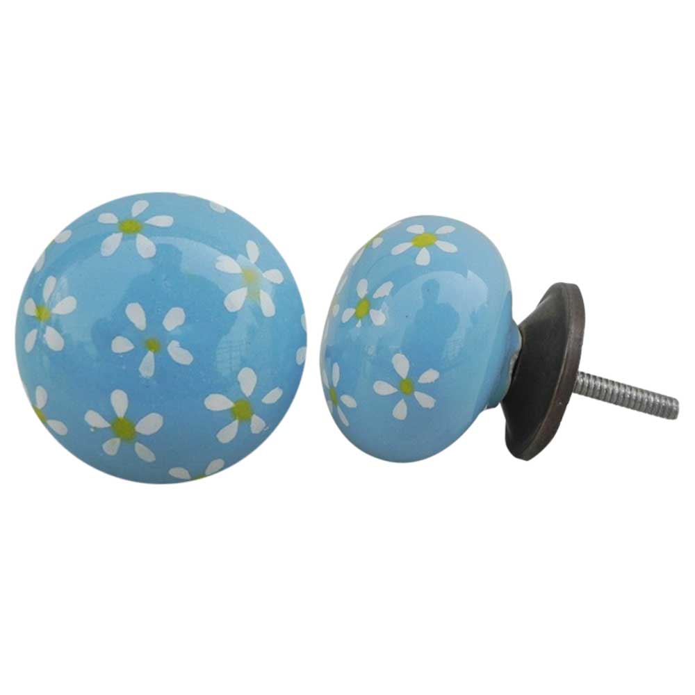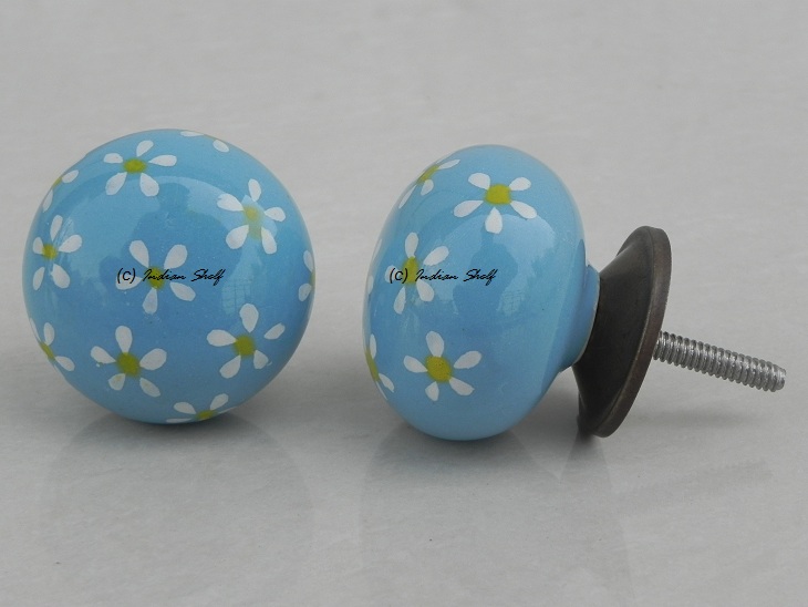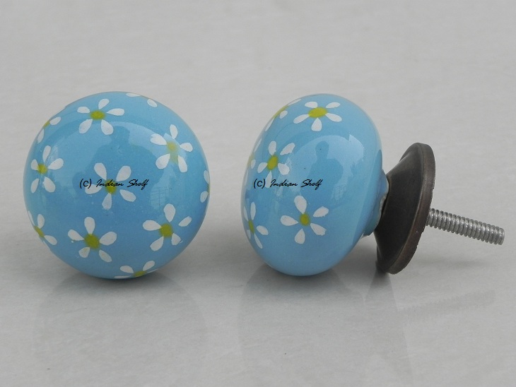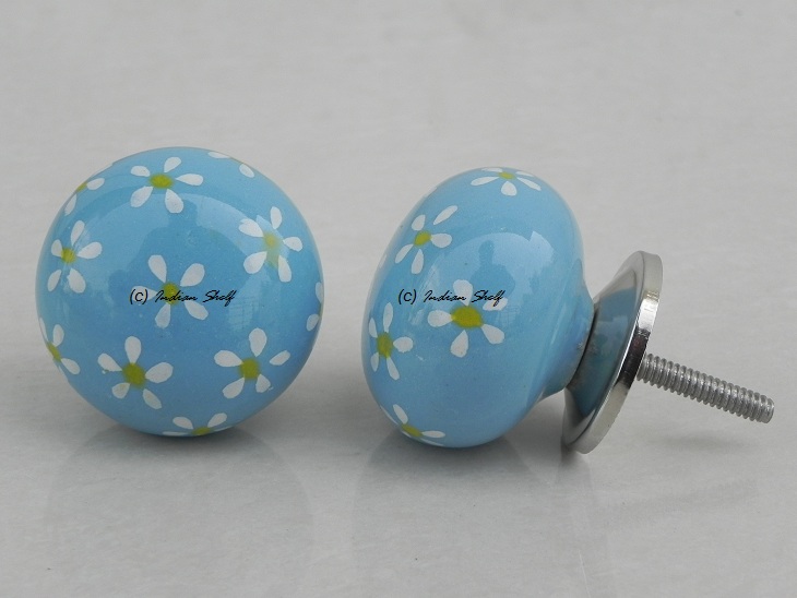 Turquoise Yellow Flower Ceramic Knob. Ideal for kitchen cabinets, kitchen drawers, dining room, bed room, chest drawers, dressing tables, almirah
