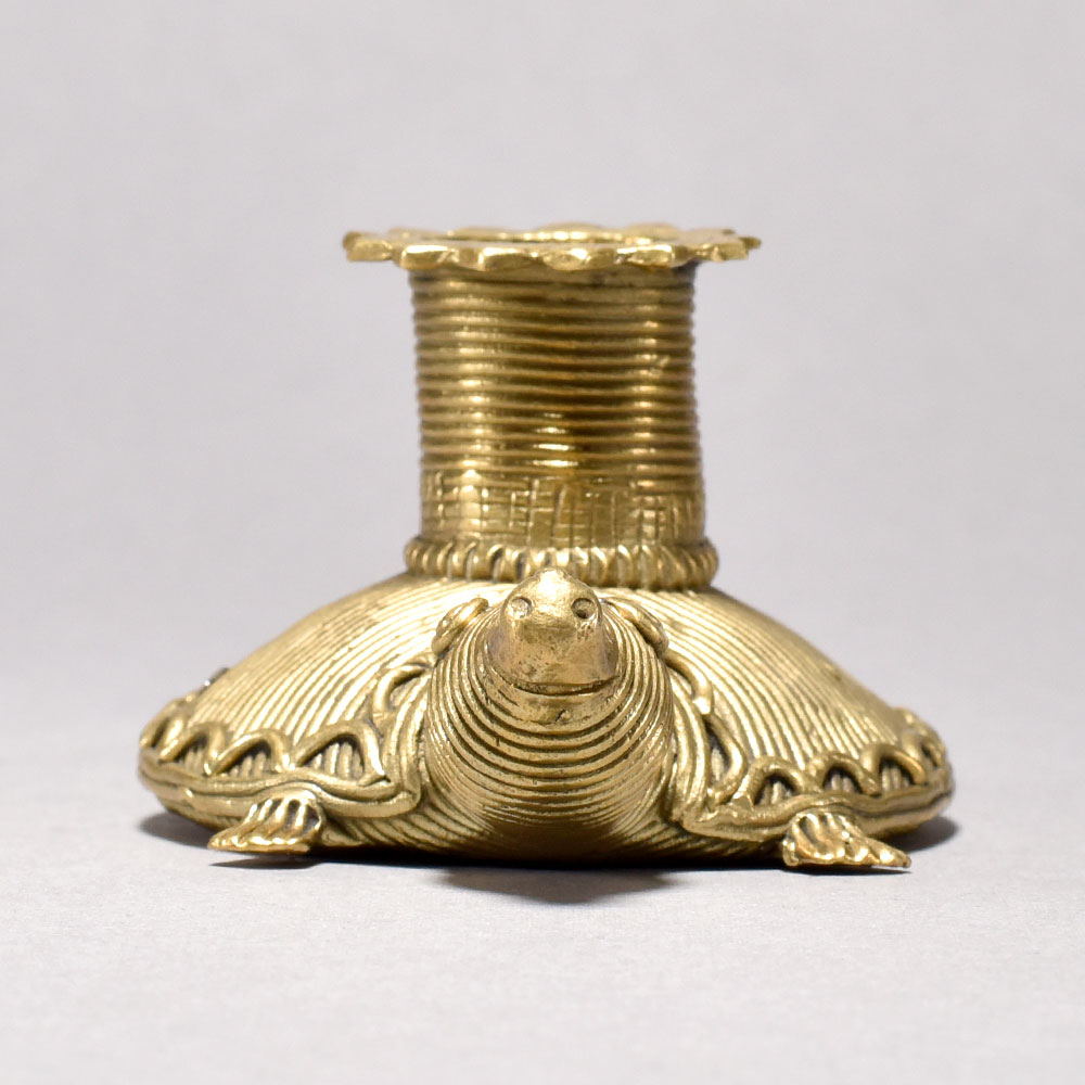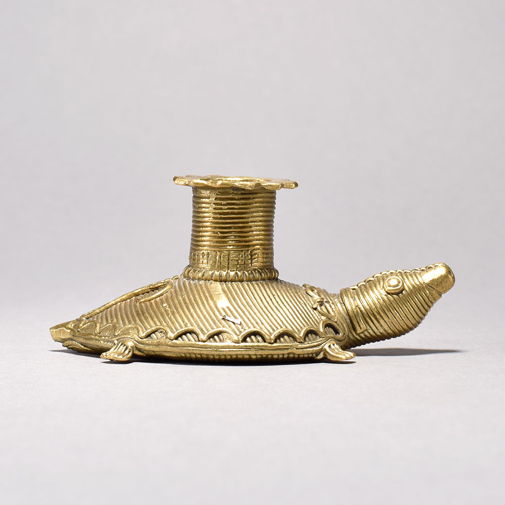 Bring the beauty of ancient tribal art into your home with this stunning metal candle and incense stick holder.This exquisite piece is more than just a functional home accessory - it's a work of art that will transport you to faraway lands. The captivating tribal turtle design is a reflection of the rich cultural heritage of the Orissa region in India, skillfully brought to life through the metal craftsmanship. Whether lit with a fragrant candle or incense, this holder will elevate the ambiance in any room, filling it with warmth, mystique, and the essence of ancient traditions. This is the perfect addition for anyone seeking to infuse their space with global inspiration and a touch of the exotic. Display it proudly and let the mesmerizing turtle design be the centerpiece that draws the eye and ignites the imagination. Intricate tribal turtle design This timeless piece is handcrafted by skilled artisans using time-honored techniques, ensuring each creation is truly one of a kind. Its versatile design makes it suitable for living rooms, bedrooms, offices, or meditation spaces, bringing a sense of heritage and style wherever it is displayed.