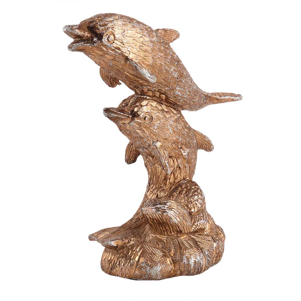 • Two Brass Leaping Dolphins Statue