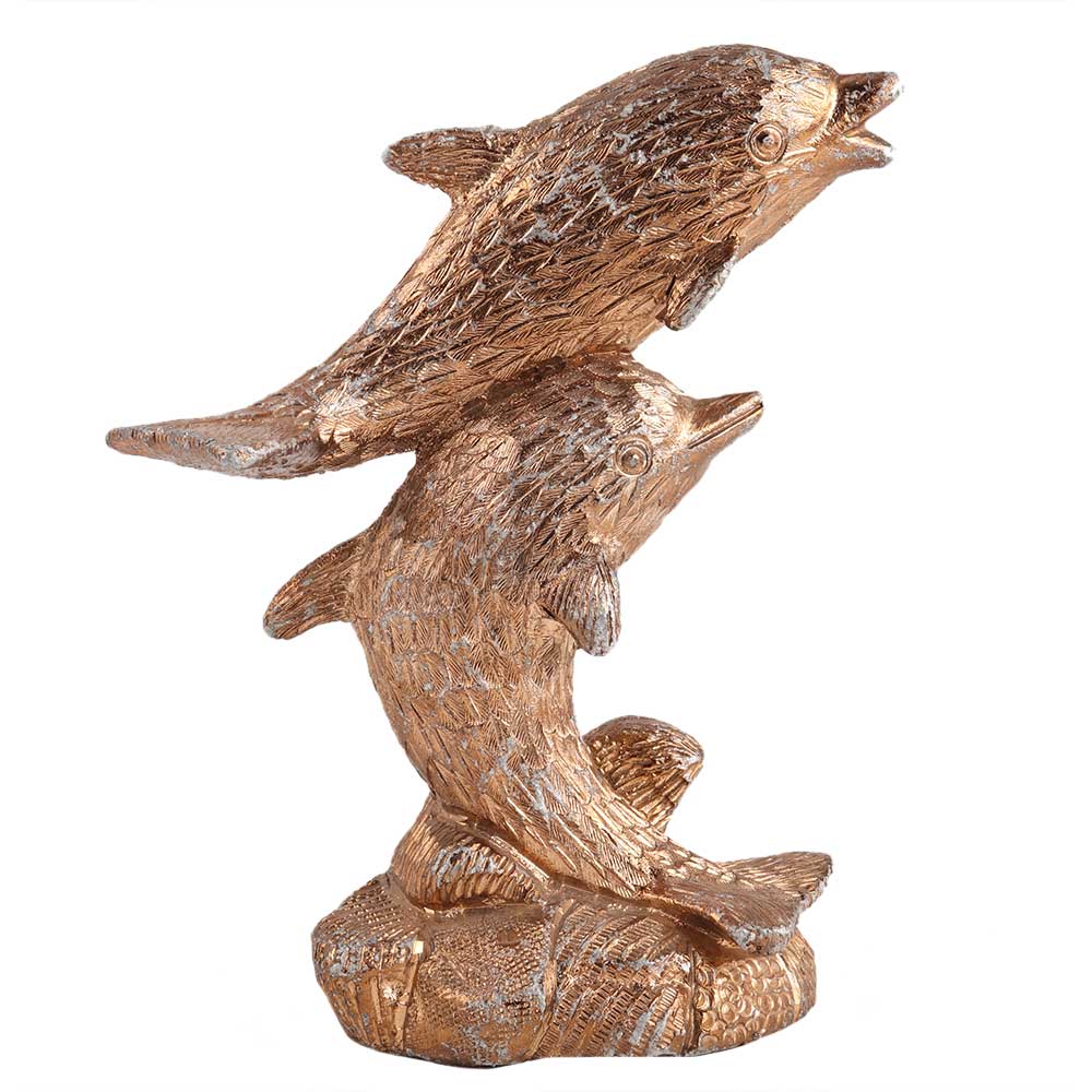 Two Brass Leaping Dolphins Statue