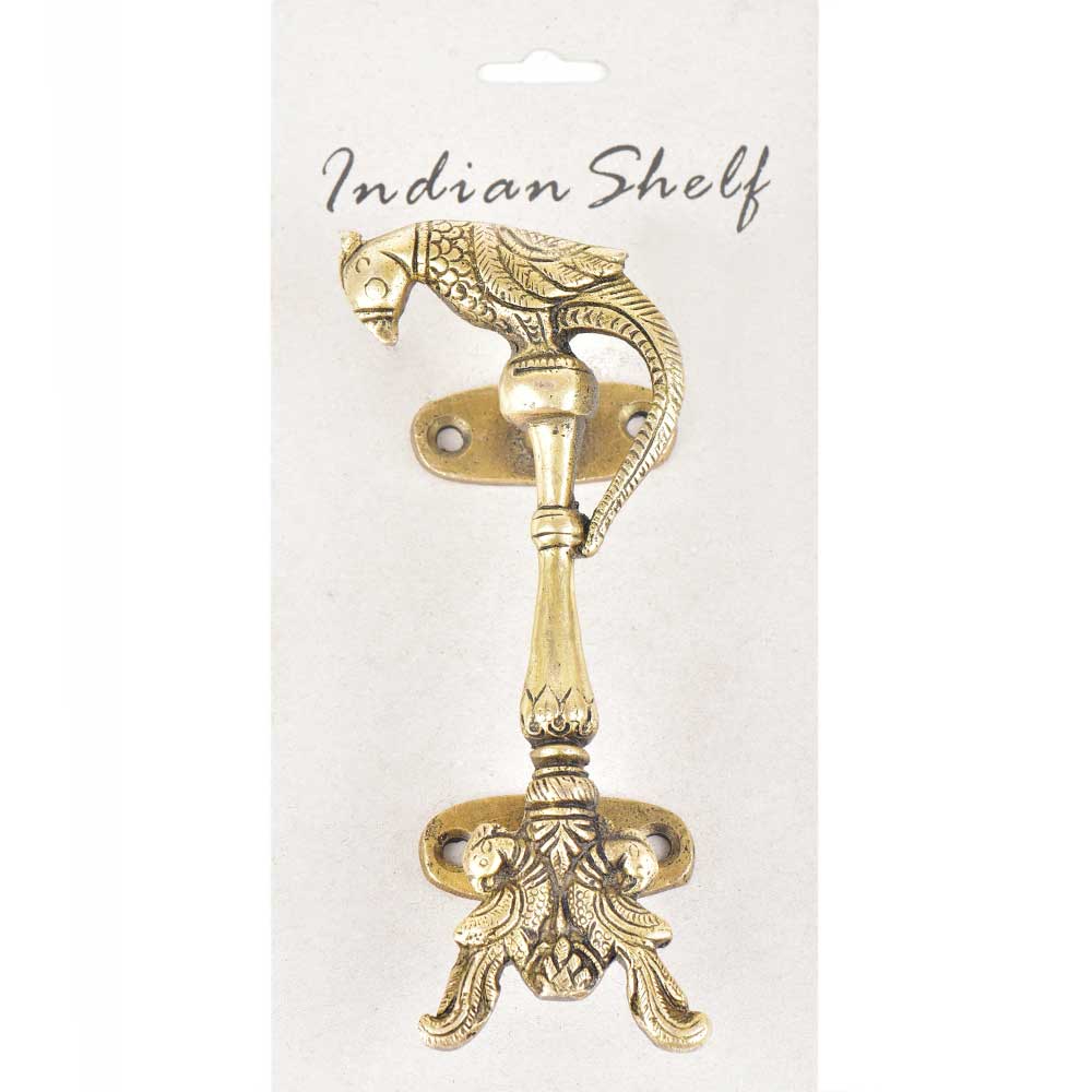Beautiful handmade door handle for the front door of your house is not only decorative but also very functional . It has two peacocks engraved on the handle and a parrot on top with a simple design at the center to give a proper grip to the handle.