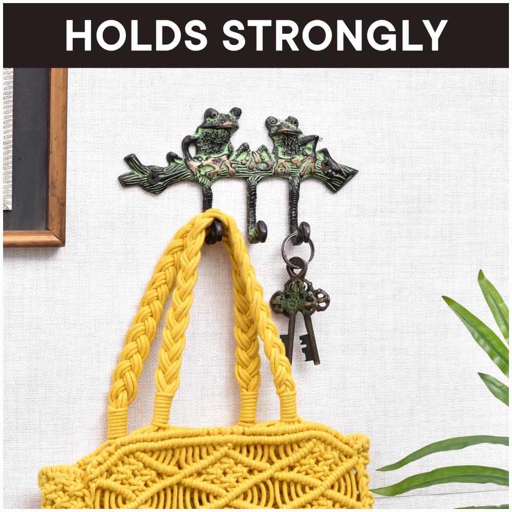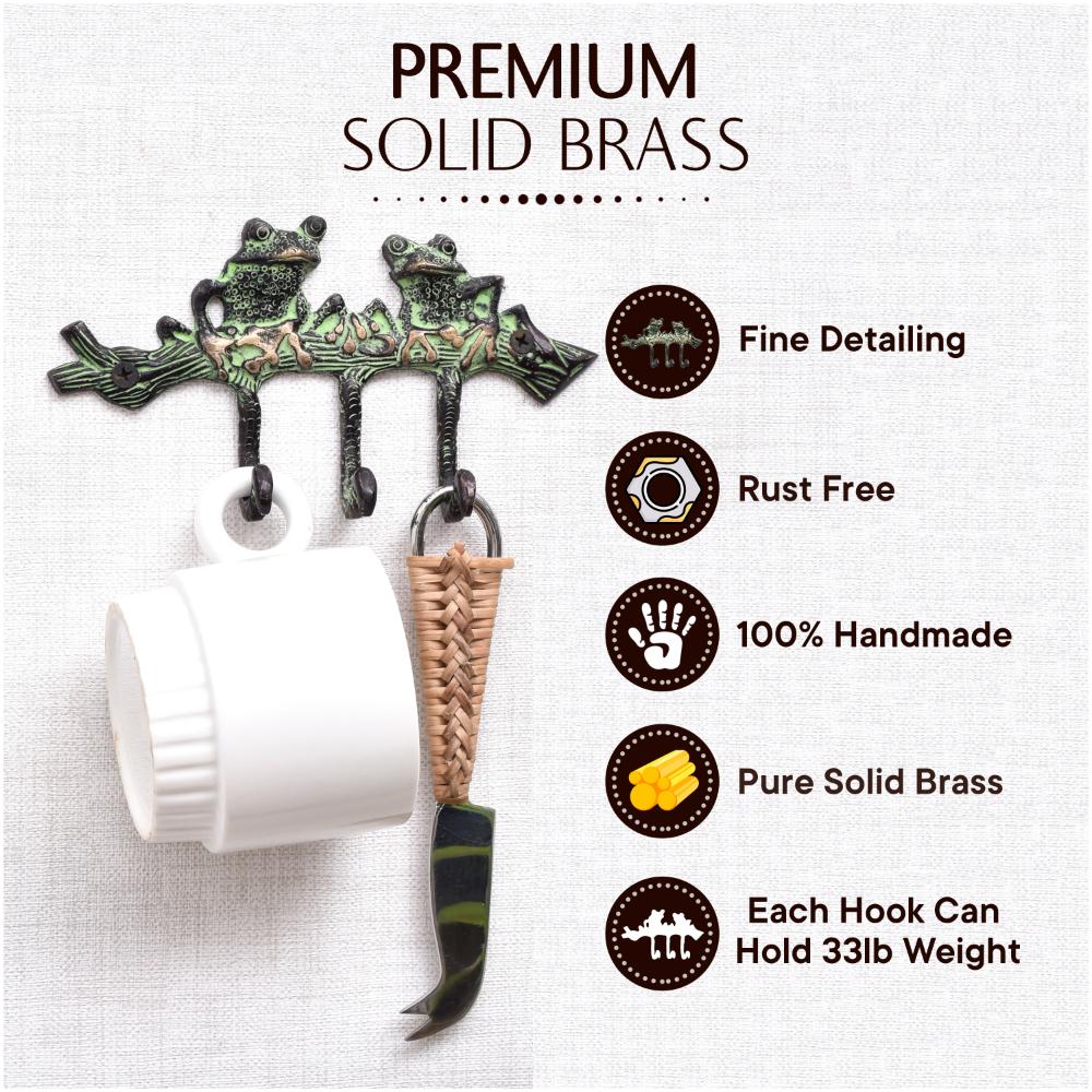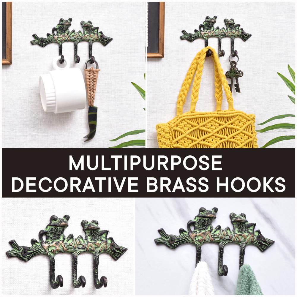While the design is aesthetically pleasing, the Brass Patina Green Frogs Hook is also a highly functional addition to your home. It can be used to hang a variety of items, such as coats, scarves, hats, jewelry, or even kitchen towels. Its sturdy construction ensures that it holds up to regular use.