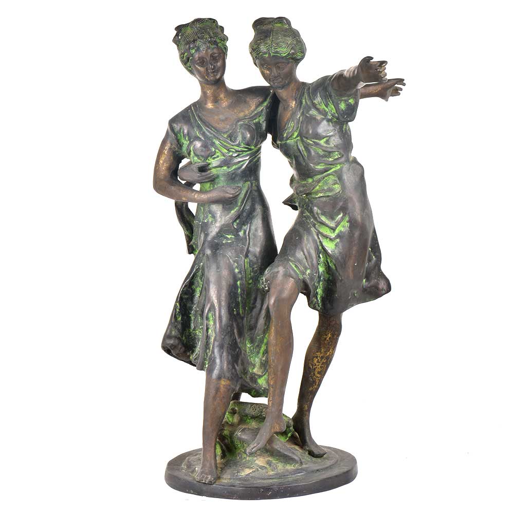 Two Ladies Dancing Brass Figurine