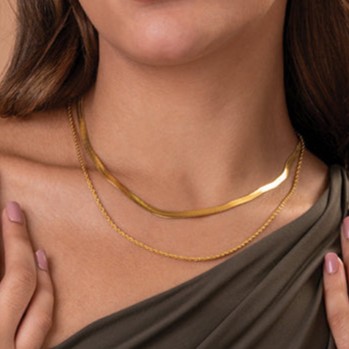 Wipe gently with a microfiber cloth after wearing to maintain the shine of both chain textures and prevent dulling.