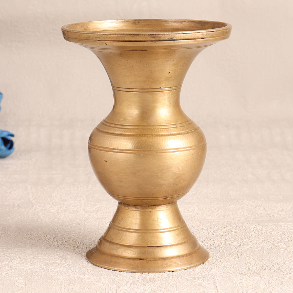 Adorn your interior with a touch of timeless elegance with our Vintage Brass Flower Pot. Handcrafted by professional Indian artisans in the traditional South Indian Art style, this exquisite piece boasts a lustrous antique golden finish that exudes opulence and charm. Meticulously constructed using high-quality brass, this flower pot is a testament to the craftsmanship that has been passed down through generations. Its exquisite design makes it a versatile addition to any setting, whether it's your home, office, hotel, cafe, shop, or restaurant. Use it to display your favourite blooms or plants, and watch as it effortlessly transforms your space into a haven of beauty and sophistication. This flower pot is not just a stunning decor piece but also an item that can be added to your vintage collection, becoming a prized possession. Its rich history and craftsmanship make it an ideal addition to exhibitions and displays. Additionally, this Vintage Brass Flower Pot makes for a thoughtful and meaningful gift for your loved ones on special, festive, or auspicious occasions, adding a touch of Indian artistry to their lives.