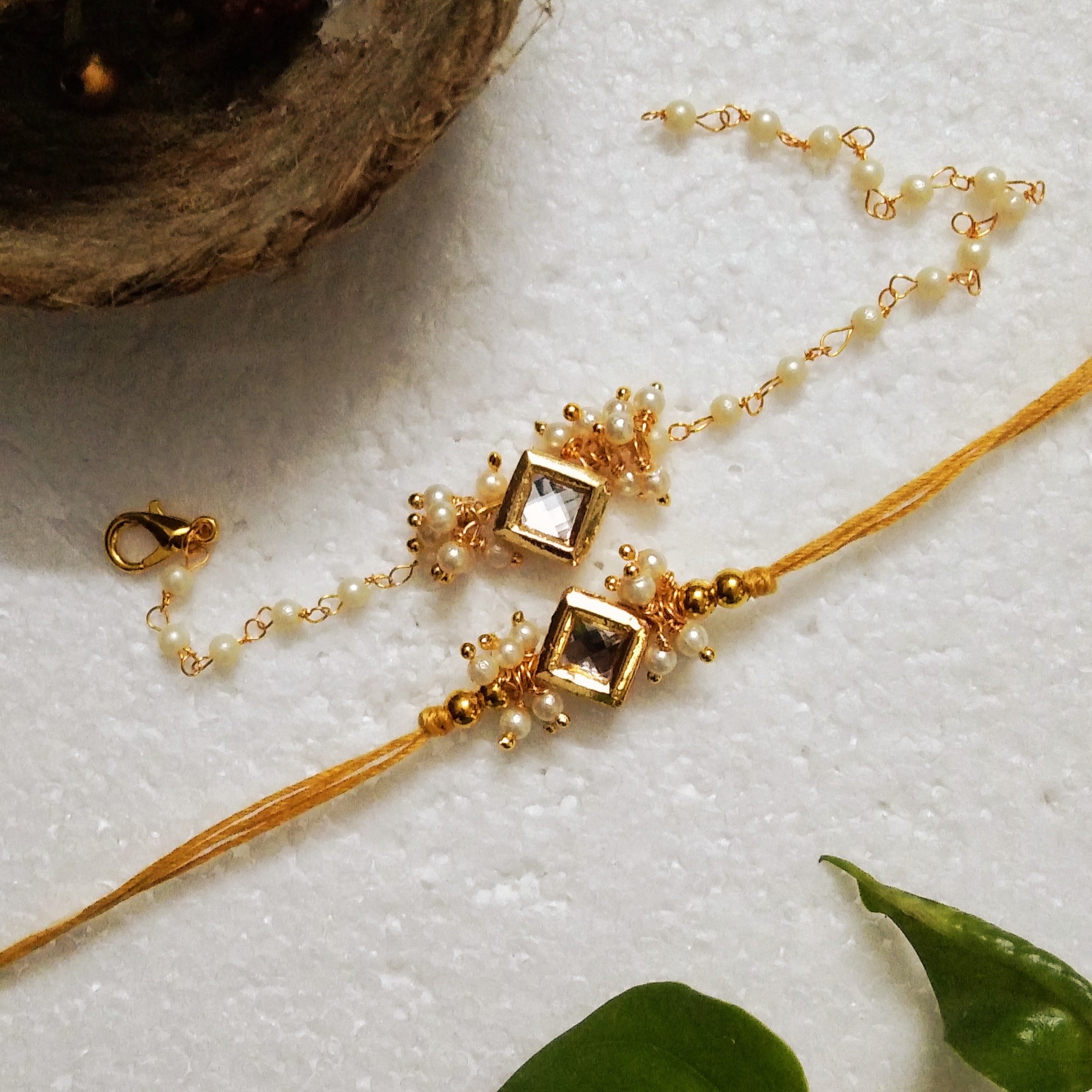 Adorn your brother's wrist with a rakhi crafted from premium kundan/acrylic beads, offering both style and a heartfelt touch to your family celebration.