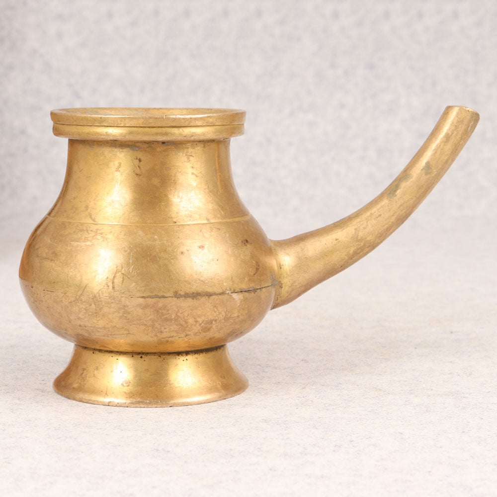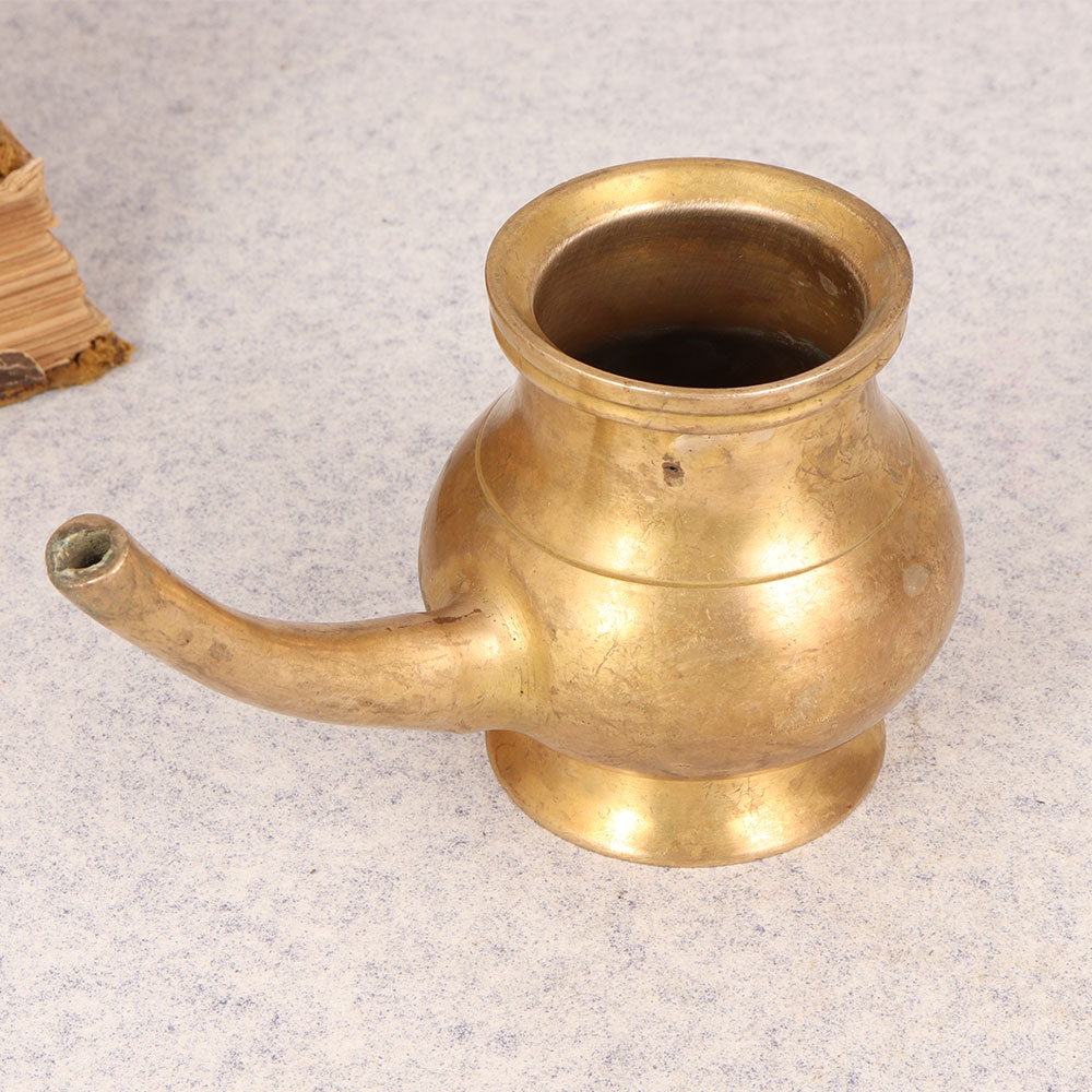 Adorn your living room with the timeless elegance of our Vintage Brass Sagar Water Pot with Spout, a cherished creation by skilled Indian artisans. Crafted from high-quality brass, its antique brown finish exudes an old-world charm, reminiscent of bygone eras. This sacred vessel, traditionally used during rituals and prayers in temples, brings a touch of spirituality to your home, office, restaurant, hotel, or café prayer room. Handmade with precision and care, this piece carries the legacy of artisanal craftsmanship, each detail telling a story of dedication and expertise. Beyond its ritualistic significance, the pot seamlessly doubles as a decorative item, blending seamlessly with diverse interior aesthetics. The timeless allure of its vintage design makes it a worthy addition to any antique collection. Moreover, it serves as a thoughtful and meaningful gift for your loved ones on special, festive, or auspicious occasions, fostering a connection between tradition and modernity.