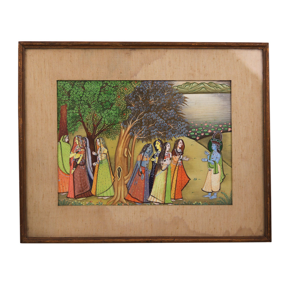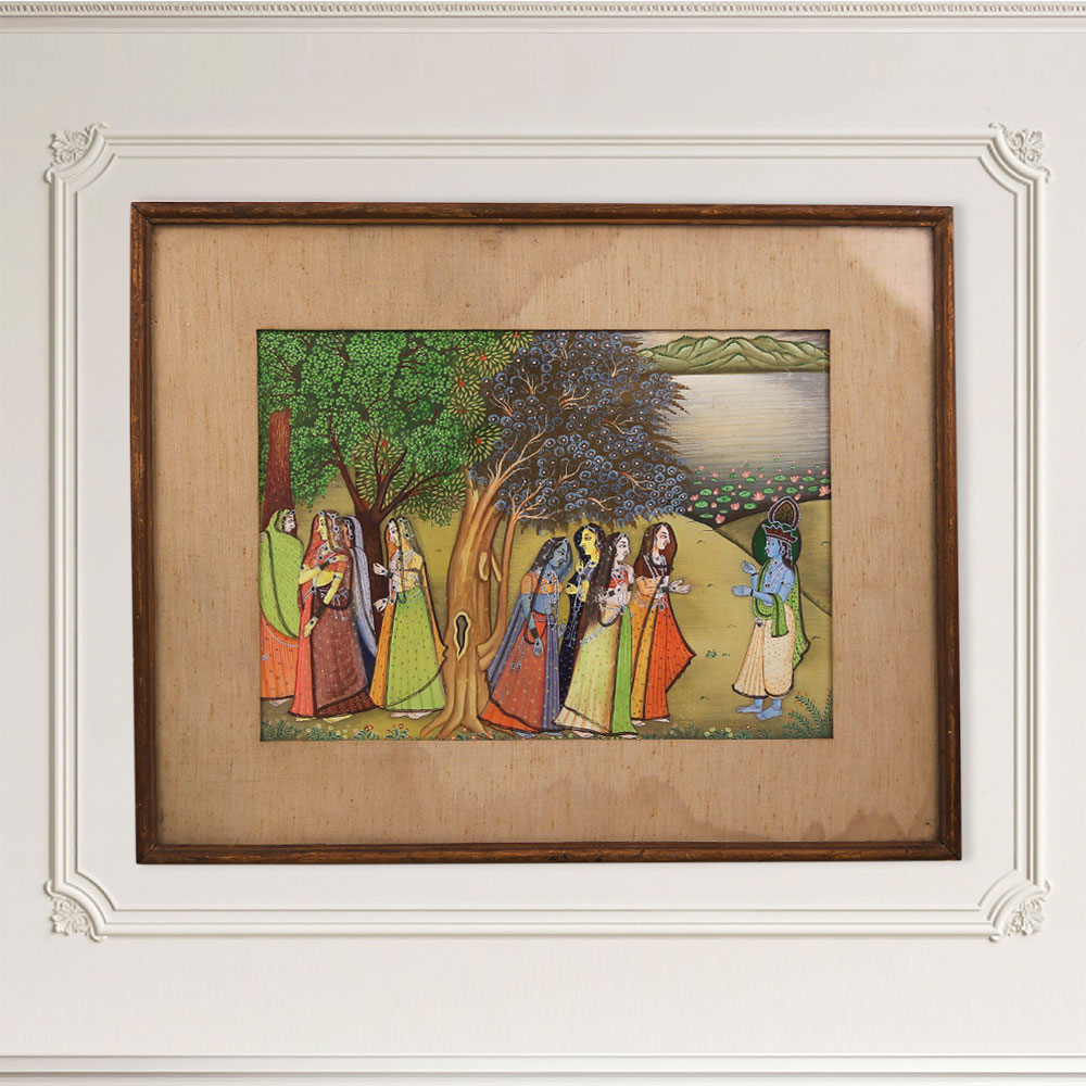 Immerse yourself in the enchanting world of Hindu mythology with this stunning used paper painting. Masterfully crafted by skilled Himalayan artists, this piece transports you to the sacred landscapes of northern India, where the divine Krishna dances with his beloved Gopies. The aged, textured paper gives this painting a sense of history and authenticity, making it a truly special addition to any art collection or home decor. Lose yourself in the vivid colors, intricate details, and spiritual energy that emanate from every brushstroke. Whether you're a seasoned art collector or simply seeking to infuse your space with a touch of cultural elegance, this painting is sure to captivate and inspire. Elevate your living space and connect with the timeless wisdom of the Himalayas. This painting is a must-have for anyone who appreciates fine art, Hindu spirituality, or the enchanting beauty of this remarkable region. Bring home a piece of history and let it transport you to a realm of wonder and divine beauty.