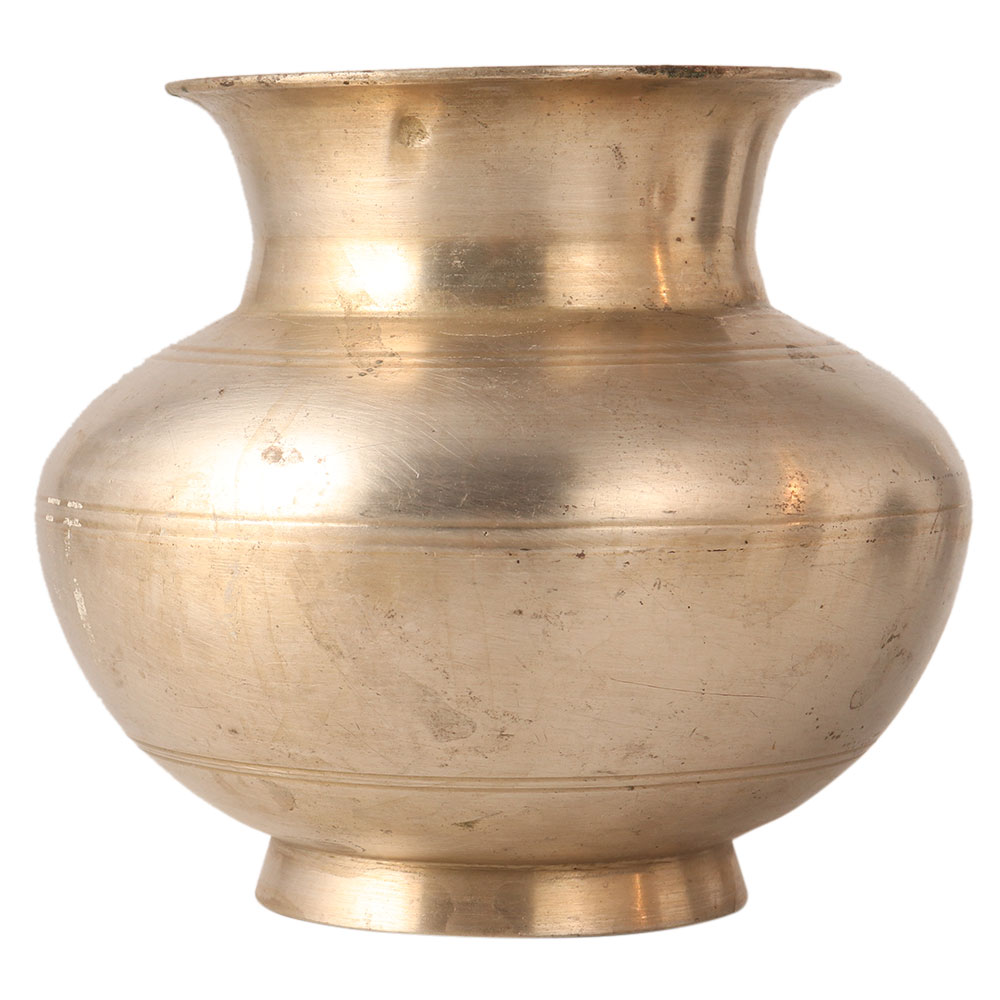 An attractive plain water pot made of a white metal alloy. It can be used in birth rituals, weddings, stage decoration, spiritual event, etc. A treat for vintage collectors.