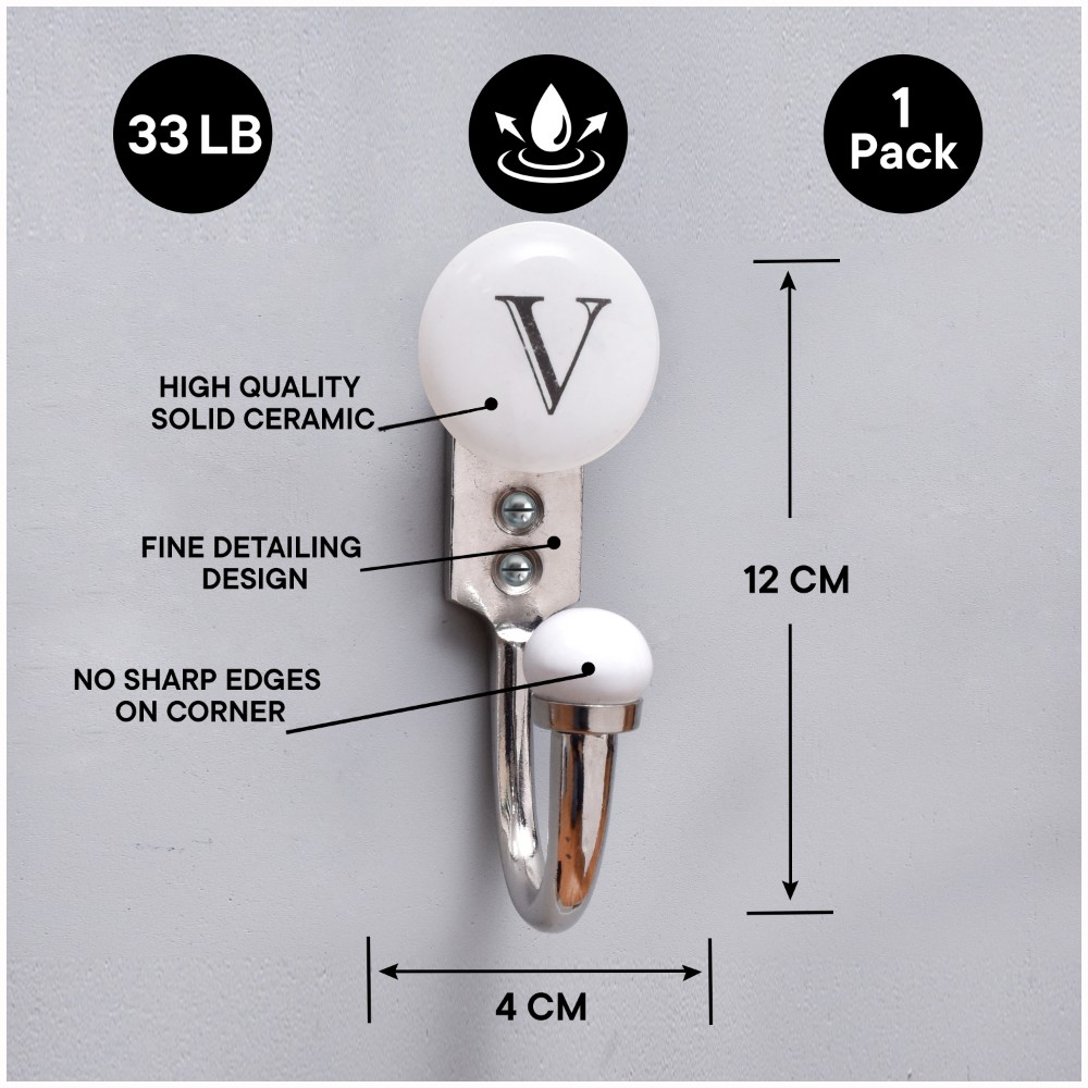 V Flat Ceramic Hook. When Put on Wall or Cabinet It is An Art in Itself. This Hook is Strong Enough to Hold Your Keys, Tea Cups, Hand Towels, Cloths Etc.