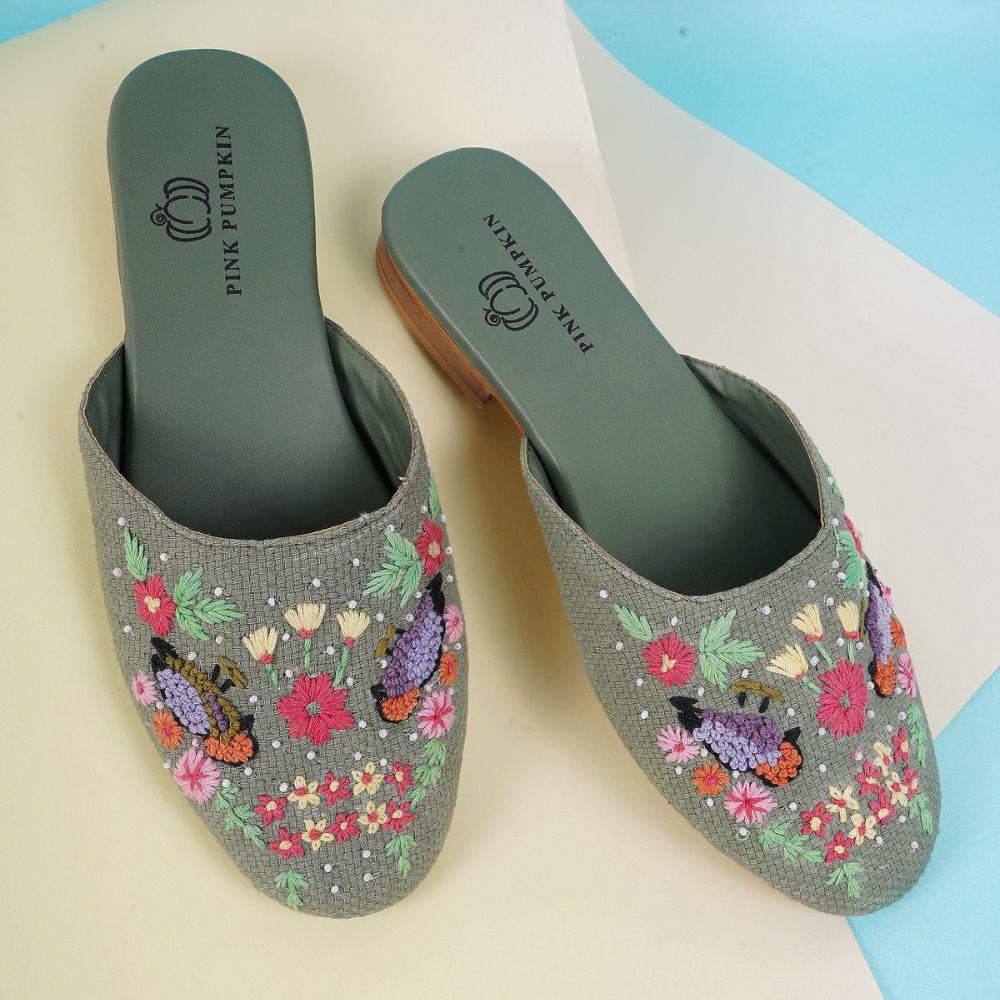 This mules unites embroidered, vibrant design with cotton fabric, rexin, tunit craftsmanship in a vibrant palette. Created for boutique owners, it enhances personal style or makes a memorable gift. Packed and quality checked by Indianshelf. Each piece is uniquely crafted by skilled artisans.