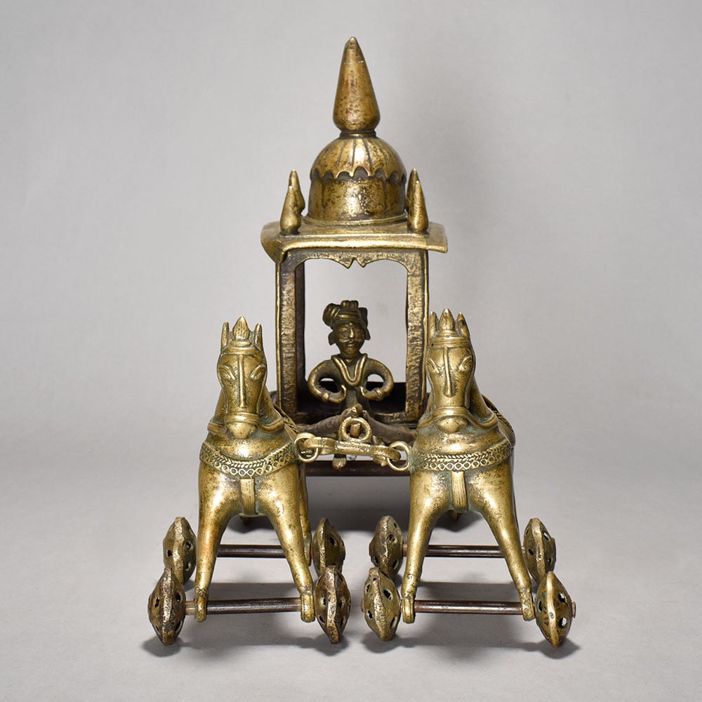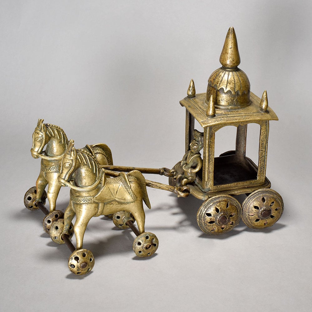 This exquisite brass cart is more than just a beautiful objet d'art - it's a portal to a bygone era of rugged exploration and unbridled wanderlust. Imagine the countless miles this cart has traveled, carrying its noble equine companions and brave, adventurous riders to new horizons. Now, you can bring that sense of history and wonder into your own home. Whether displayed proudly on your mantel, side table, or bookshelf, this vintage-inspired cart will instantly elevate the elegance and sophistication of any room. Its timeless design and exceptional craftsmanship make it a true heirloom piece that can be passed down for generations. Treat yourself to a little piece of the past, and let this stunning cart transport you to a simpler, more enchanting time.