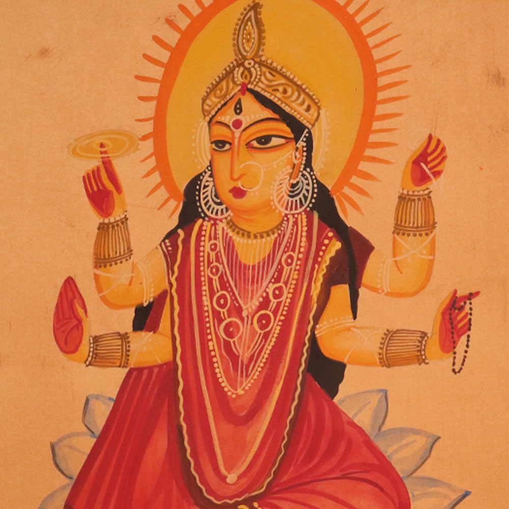 - Features a breathtaking depiction of an Indian Goddess in vibrant, jewel-toned colors