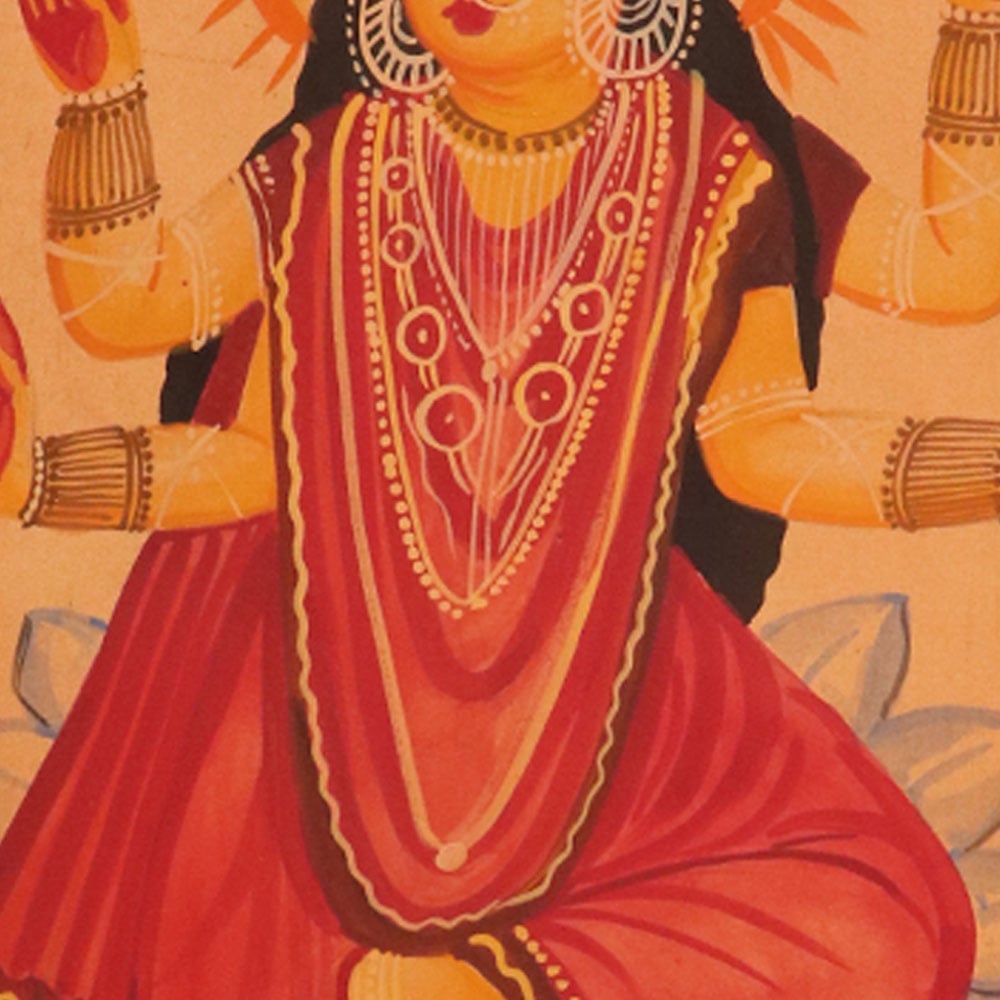 Elevate your space with the captivating beauty of our Vintage Calendar Art Paper Painting of an Indian Goddess. This stunning piece transports you to a world of timeless elegance and spiritual wonder. Infuse your home with the enchanting energy of this one-of-a-kind artwork. The intricate details and vibrant hues of the Indian Goddess create a mesmerizing focal point, drawing the eye and igniting the imagination. Whether displayed alone or as part of a curated gallery wall, this painting adds an elegant, spiritual touch that elevates any space. This vintage calendar art piece is perfect for those seeking to connect with the rich cultural heritage of India. It makes an ideal gift for spiritual seekers, art enthusiasts, or anyone looking to infuse their living or work space with a sense of timeless beauty and divine inspiration. Bring the captivating essence of an Indian Goddess into your world and enjoy the transformative power of this stunning work of art.