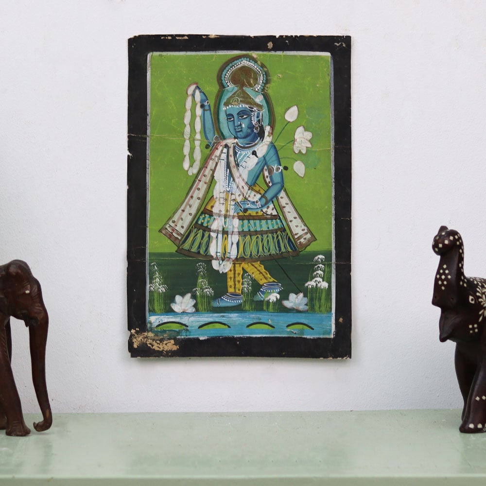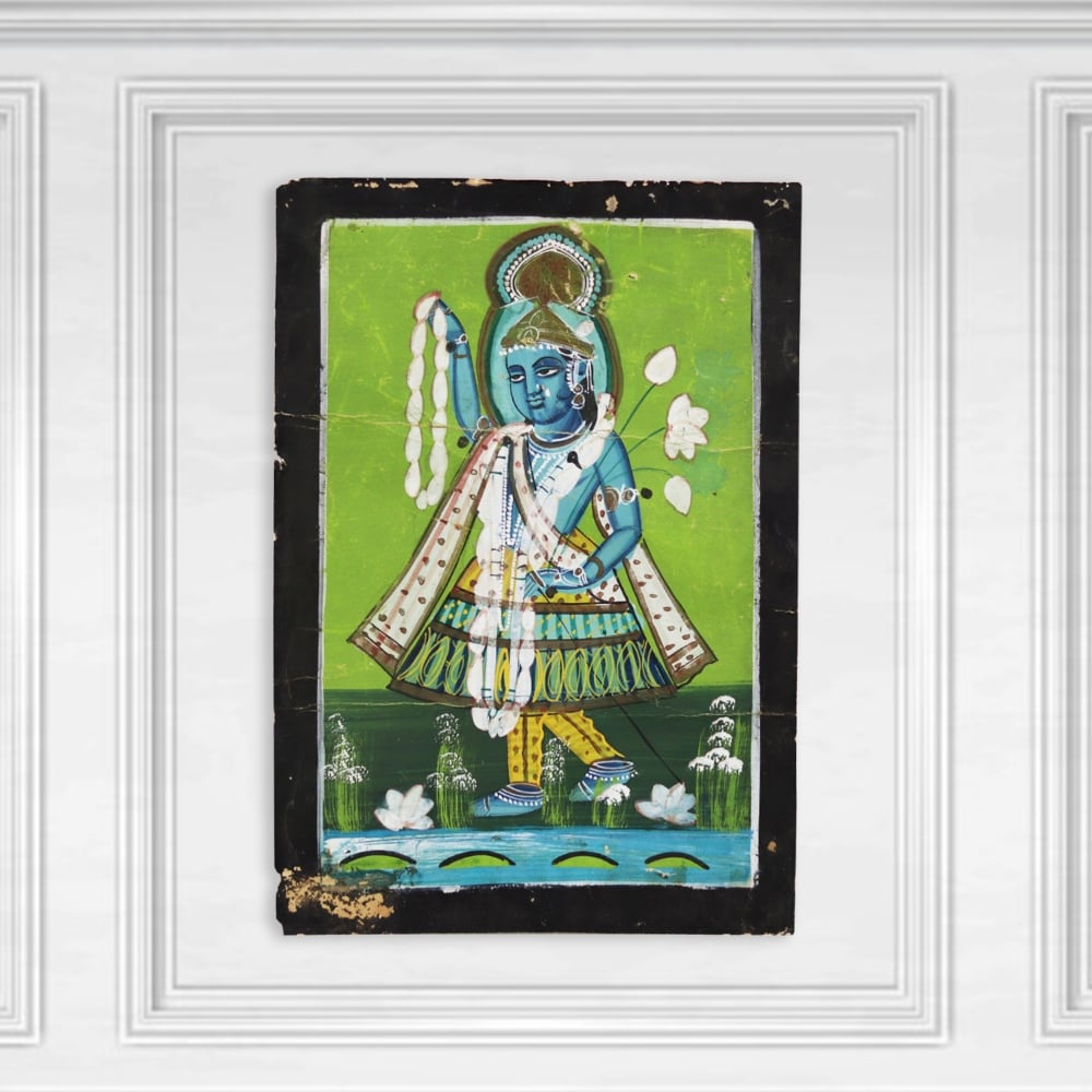 Prepare to be captivated by the timeless elegance of this Vintage Old Paper Painting of Lord Krishna. Meticulously crafted with the utmost care, this stunning artwork transports you to a world of divine splendor, where the revered Lord Krishna comes alive on the canvas. This painting is not just a work of art - it's a portal to a realm of spiritual enchantment. Gaze upon the serene countenance of Lord Krishna and feel the weight of the world melt away. Let the painting's timeless beauty captivate your senses and inspire a deeper connection to the divine. Whether you're a collector of fine art, a devotee of Lord Krishna, or simply someone who appreciates the beauty of the past, this Vintage Old Paper Painting is a must-have addition to your collection. Elevate your living space and surround yourself with the timeless allure of this exceptional piece. Embark on a journey of spiritual and artistic discovery with this Vintage Old Paper Painting of Lord Krishna.