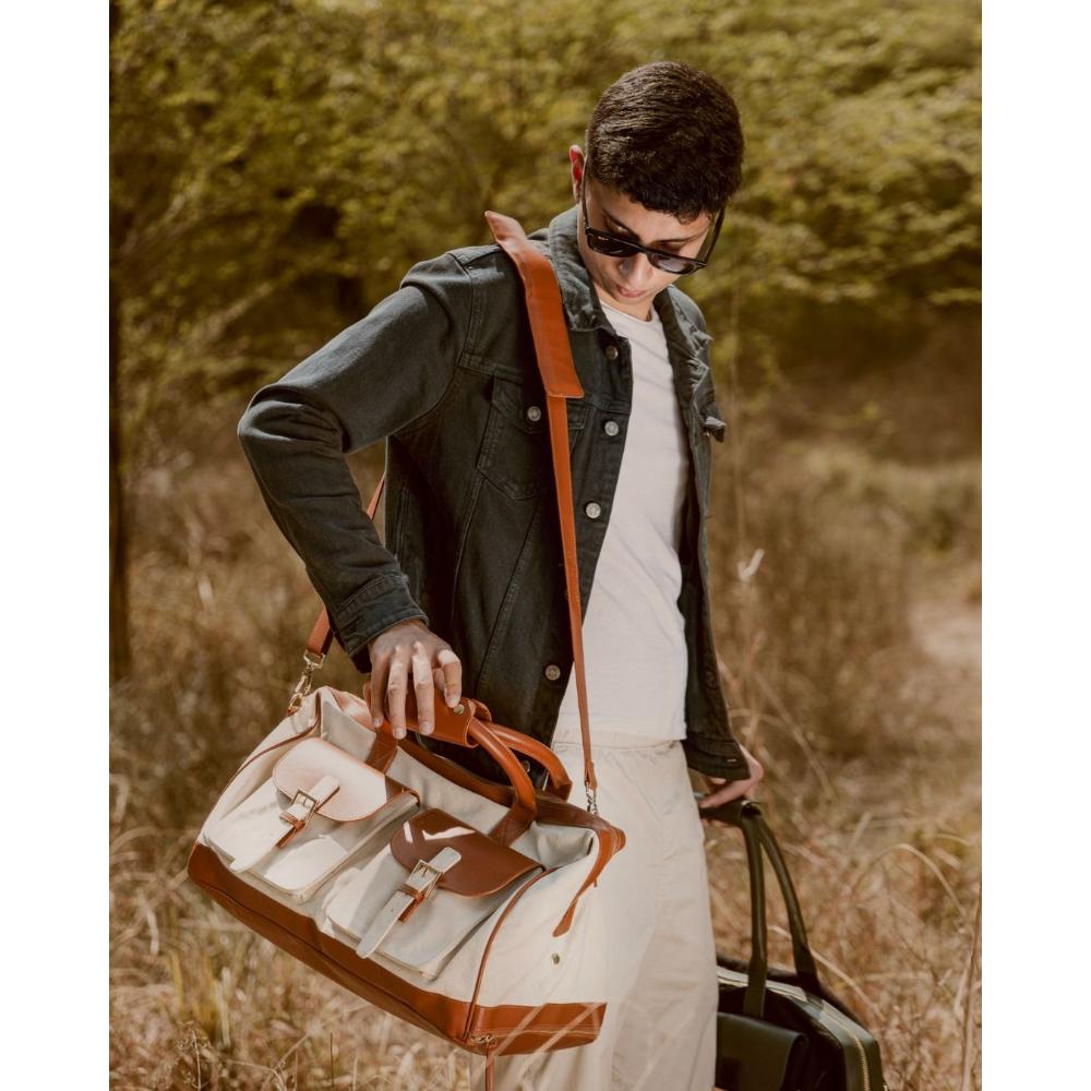 This vintage beige brown vegan leather duffle bag embodies vintage and vegan leather craftsmanship. Ideal for design aficionados and art lovers, it offers a statement of style and function. Packed & quality-checked by Indianshelf.
