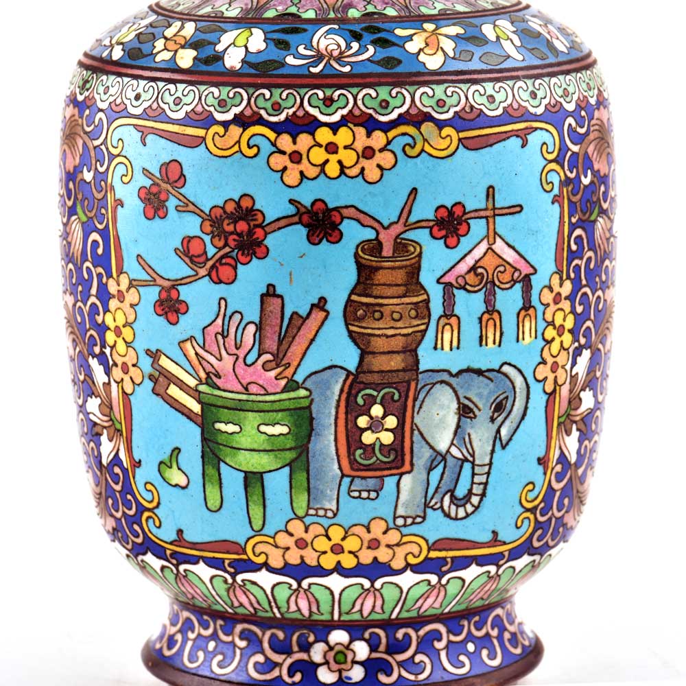 • Vintage Blue Elephant Cloisonné Enamel Jar