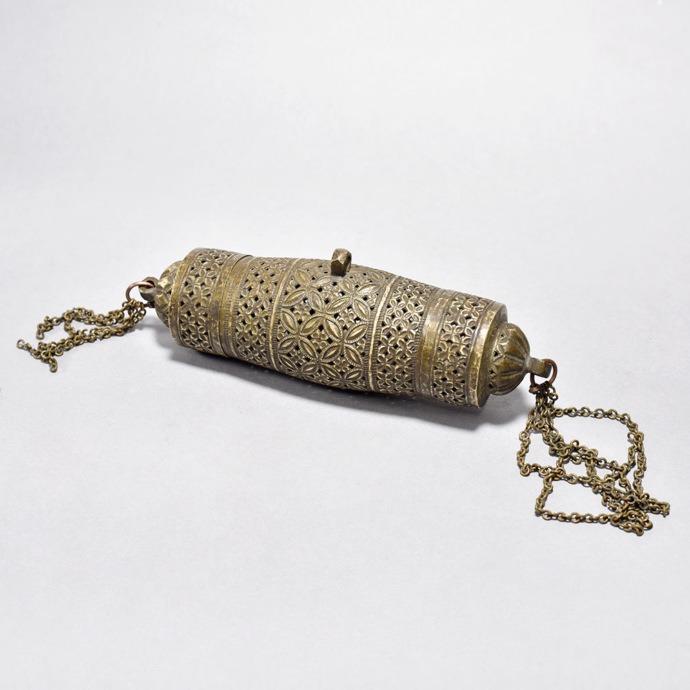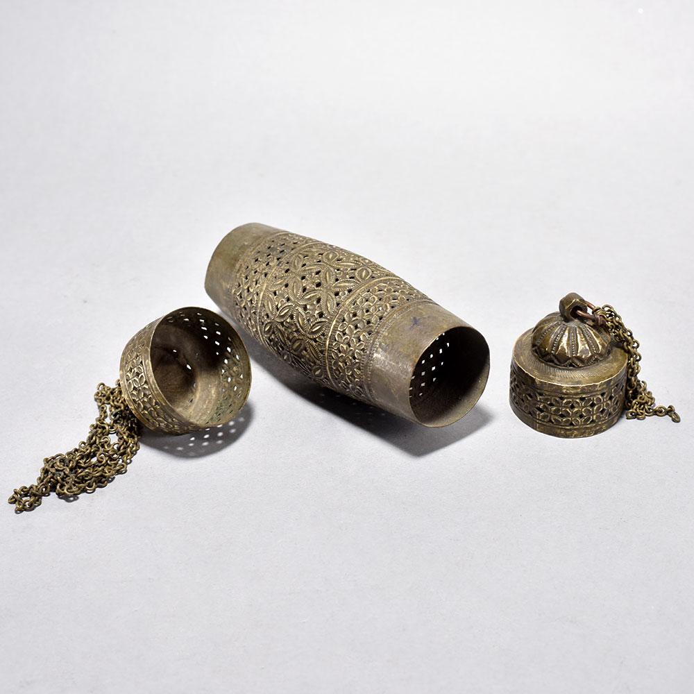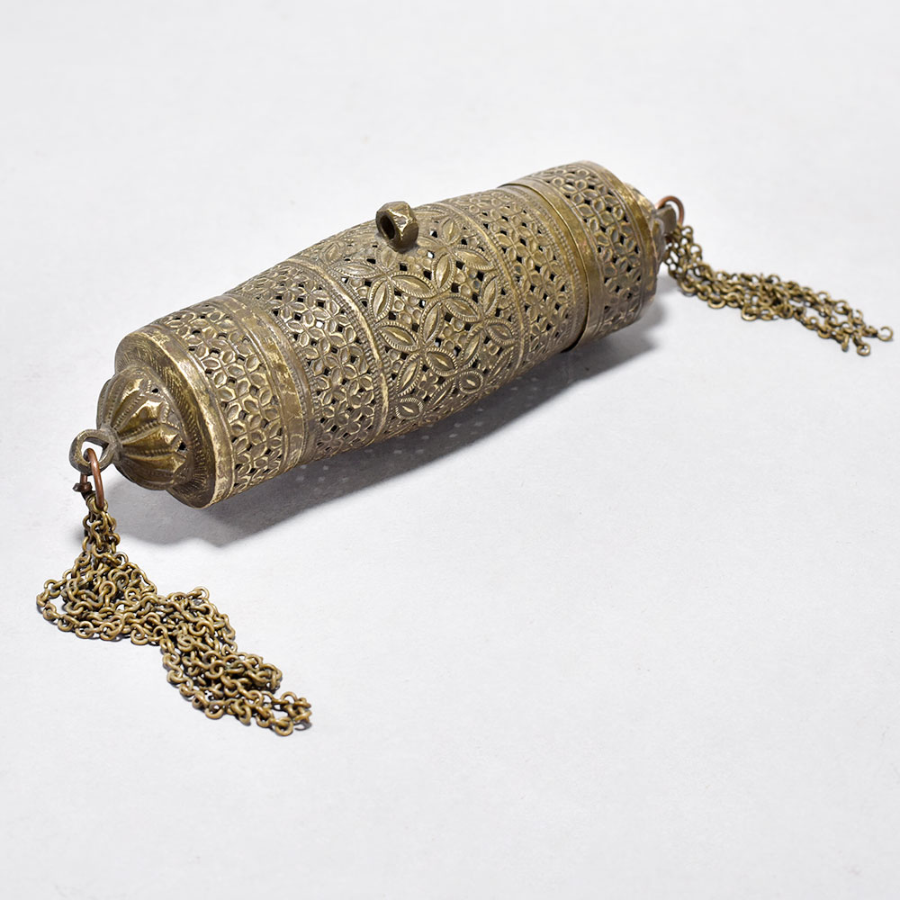 Elevate your kitchen with the captivating Vintage Brass 2 Lid Spice Box. Crafted with meticulous attention to detail, this stunning piece showcases the rich heritage of Central India.This exquisite spice box isn't just a functional storage solution - it's a work of art that will infuse your kitchen with timeless charm. The elaborate jali detailing lends an air of sophistication, while the sturdy brass construction ensures lasting durability. Whether you're a seasoned home chef or simply appreciate fine craftsmanship, this spice box will elevate your cooking experience and delight your senses. Bring the captivating essence of Central India into your home. The Vintage Brass 2 Lid Spice Box is a must-have accessory for discerning culinary enthusiasts who value both form and function. Handmade from gleaming brass Features two lids adorned with intricate jali (lattice) work Delicate perforations create an elegant, eye-catching pattern Allows for easy access to your spices and seasonings