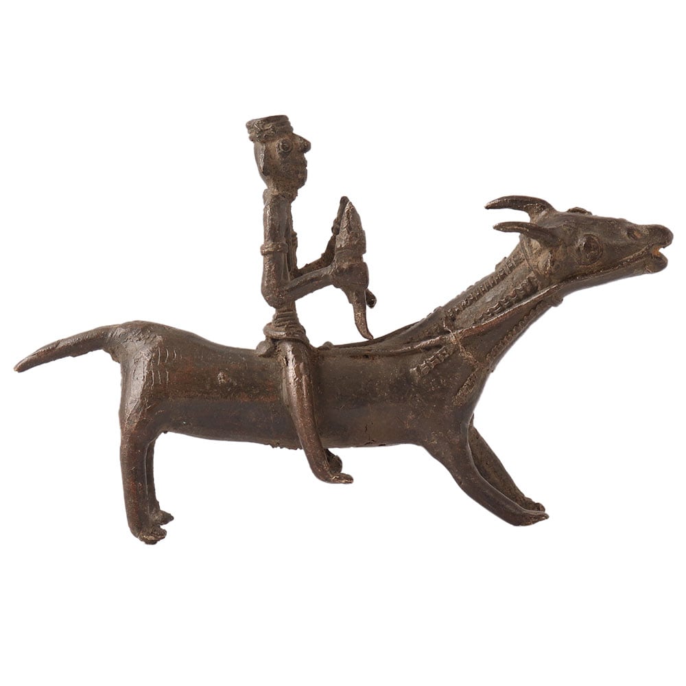 A vintage style statue of an animal and the rider made of high quality brass. Buy this brass statue online from our website and get it delivered to your doorstep. This brass sculpture is made by skilled Indian craftsmen and looks amazing with its attention to detail. Brass statues are usually more reliable and sturdy than stone statues. They spread positive energy in the environment which makes the person stress free and calms the mind. Place this statue with sophisticated design on your table, shelf, altar or reception to catch the eyes of your visitors and guests. Enhance the interior or exterior decoration of your home, restaurant or office with this beautiful tribal art statue. Gift for special and festive occasion for your loved ones.