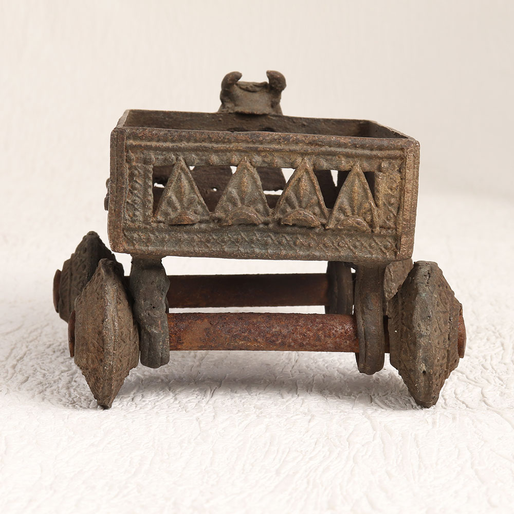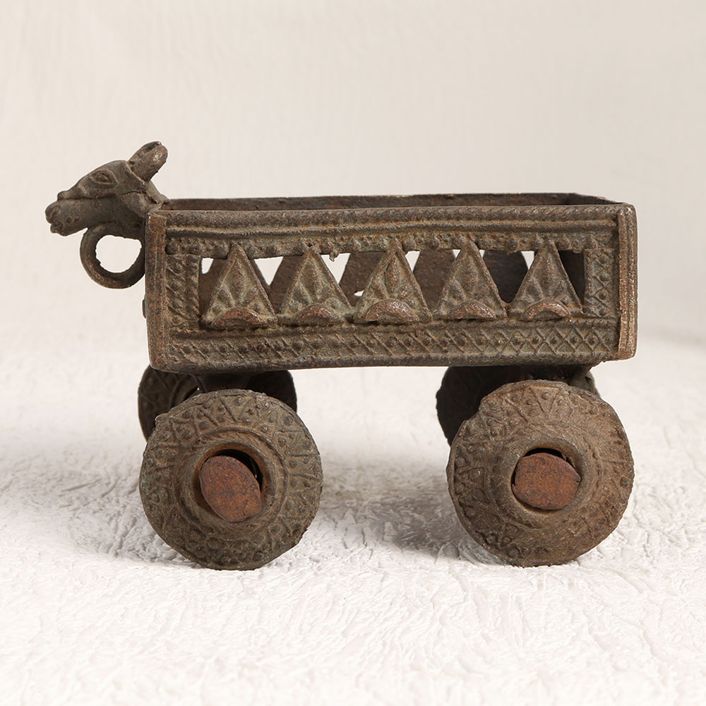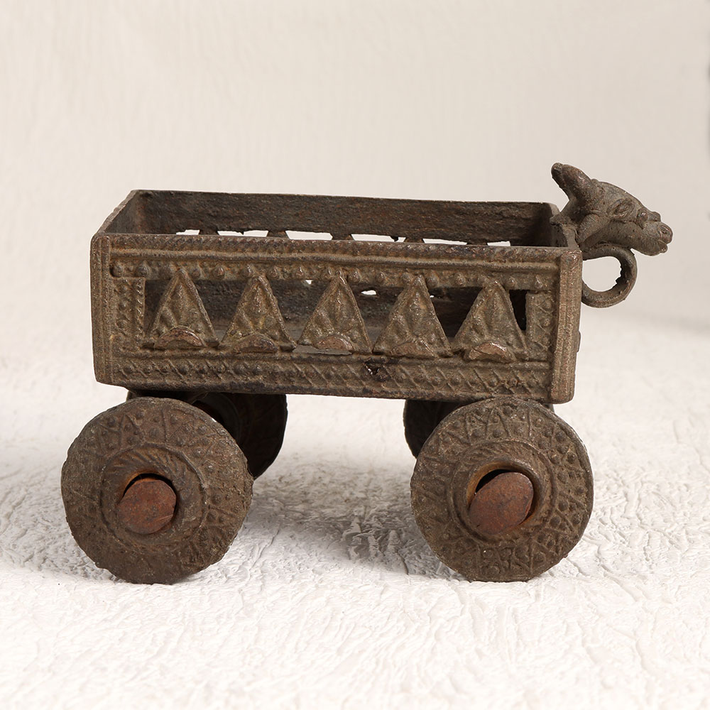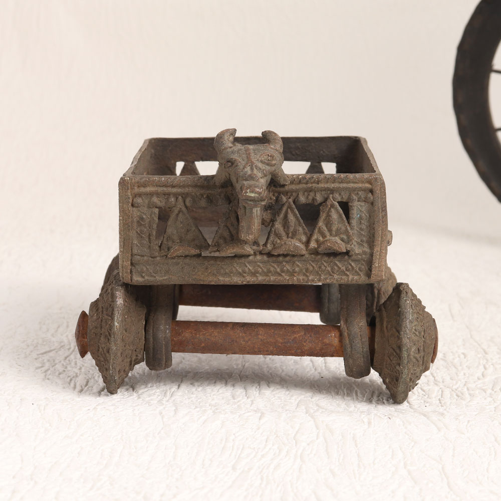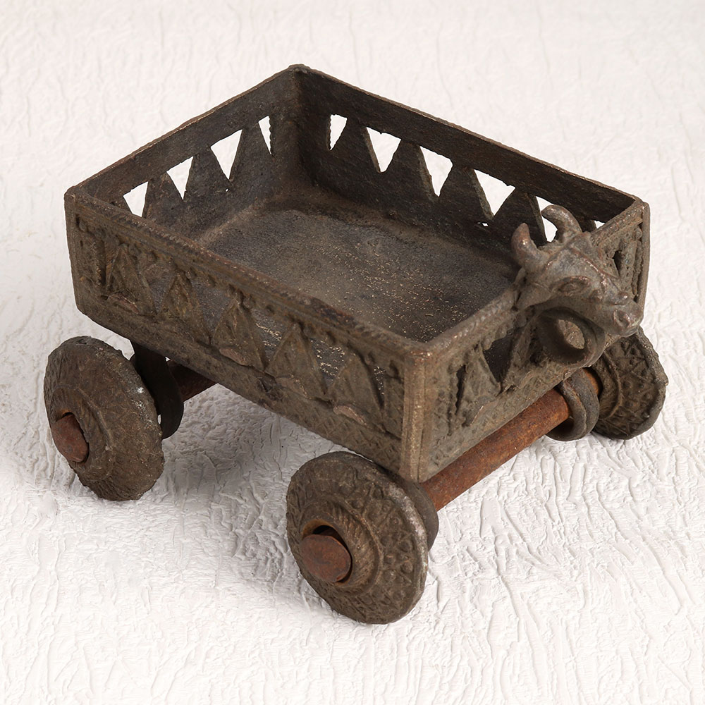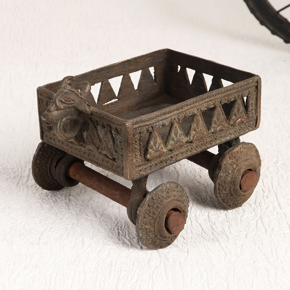 Buy a Vintage Brass Cart online that is a stunning blend of history, functionality, and aesthetics. Handcrafted by highly talented artisans in the age-old tradition of Tribal Art, this exceptional piece is a testament to their dedication and expertise. This antique brown-finished brass cart boasts an exquisite design featuring four intricate wheels and a majestic bull head at the front, paying homage to traditional motifs. Its elegant, vintage charm is further enhanced by the use of high-quality brass, ensuring both durability and an authentic, timeless appeal. Versatile in purpose, this cart serves as a small flower pot, bringing nature's beauty into your living spaces. It's not just a decorative item, it's a piece of history that can elevate the ambiance of your home, office, restaurant, hotel, cafe, or shop. It's perfect for adding a touch of elegance to your prayer room, making it suitable for spiritual moments. Whether you're an avid collector of vintage treasures or wish to showcase it at an exhibition, our Vintage Brass Cart is a unique addition that tells a story. It's also an exquisite gift option for your loved ones on special, festive, or auspicious occasions, symbolizing your appreciation for their timeless presence in your life.