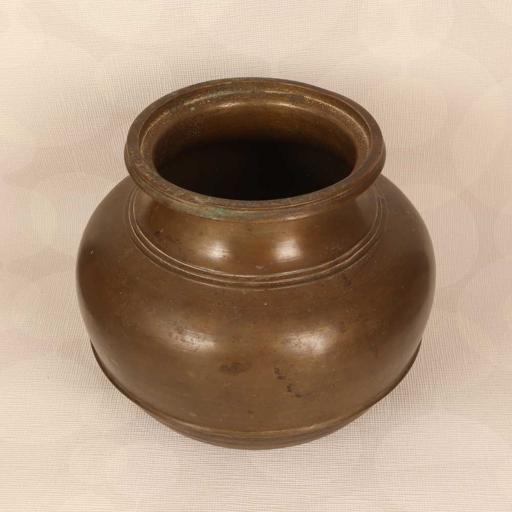 Add a touch of antique charm to your home decor with this stunning vintage brass cooking pot from South India. The elegantly curved shape and intricate engraved patterns make this pot a true showstopper, guaranteed to spark conversation when displayed with flowers or other accents. This eye-catching brass pot offers the rustic, timeworn beauty of a true antique that has been lovingly passed down and preserved over the years. While it may look like it came straight from a South Indian village generations ago, this decorative pot should not be used for cooking. Instead, highlight its vintage charm by filling it with your favorite blooms or pairing it with other accents as an exotic statement piece. Give your home an instant dose of old-world character with this vintage brass stunner. Ideal for those looking to add a touch of antique allure to their living space decor. This brass cooking pot brings a sense of exotic, rustic charm that instantly elevates any area.