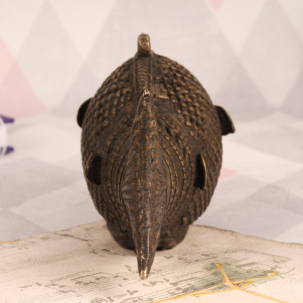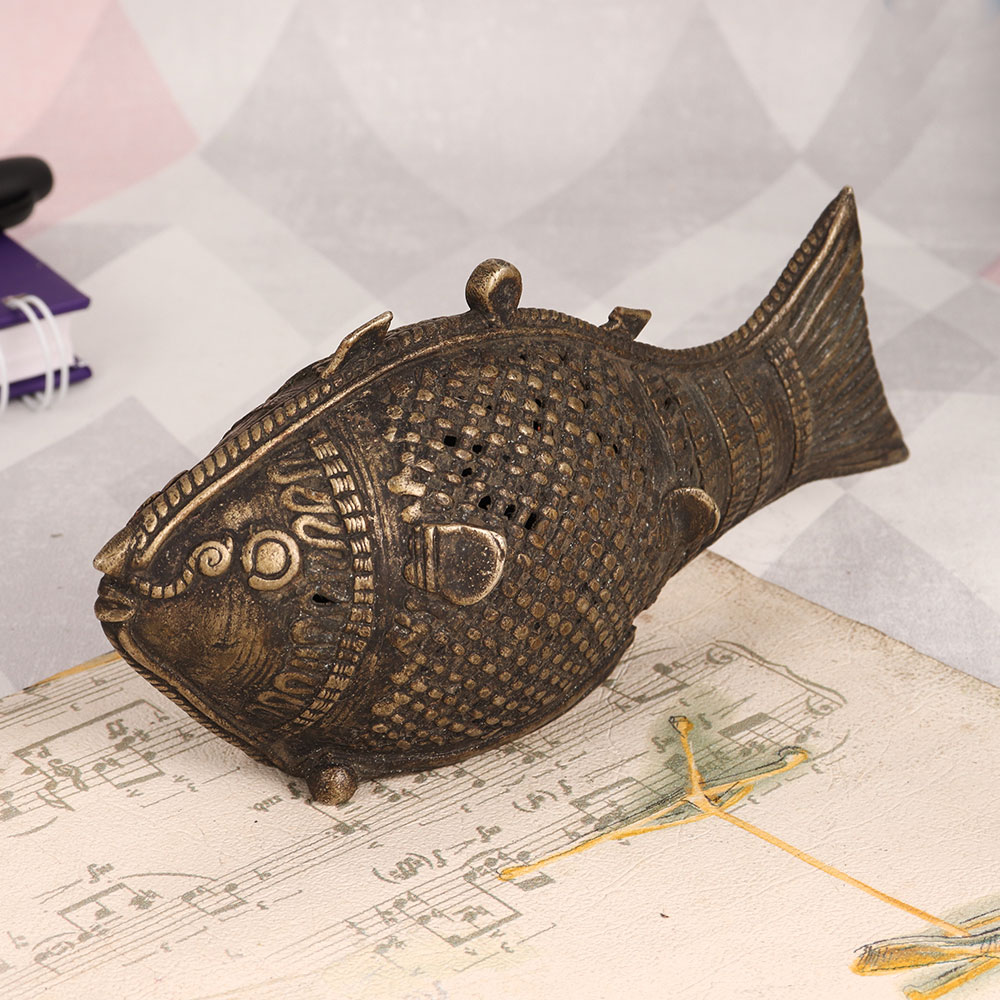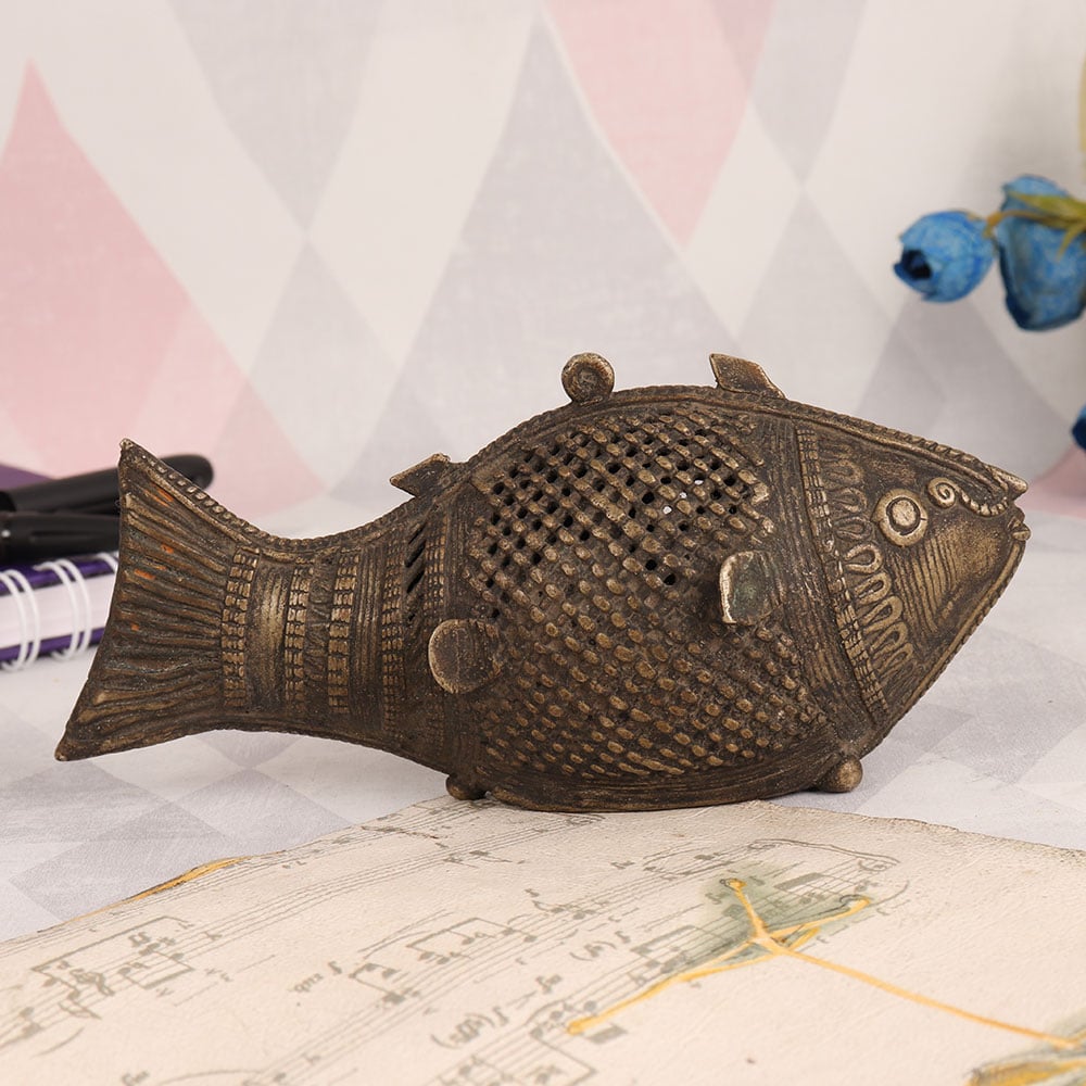 Adorn your decor with the exquisite charm of our handmade Brass Fish Statue that is meticulously crafted by skilled Indian artisans. This stunning piece features an antique brown finish that lends it an air of timeless elegance. Crafted from high-quality brass, this fish statue embodies exceptional craftsmanship and attention to detail. Its versatile design makes it a perfect addition to various settings, including your home, office, restaurant, hotel, cafe, or shop. Place it on a mantel, desk, or shelf to instantly elevate the ambiance with its artistic allure. Beyond its decorative appeal, this brass fish statue also doubles as a functional item. Use it as a paperweight to add a touch of sophistication to your workspace. Its intricate design and antique finish make it a prized addition to any vintage collection or exhibition. Celebrate special occasions by gifting this exquisite piece to your loved ones, making their day even more memorable. Whether it's a festive celebration or an auspicious event, this Brass Fish Statue is a timeless and meaningful present that will be cherished for years to come.