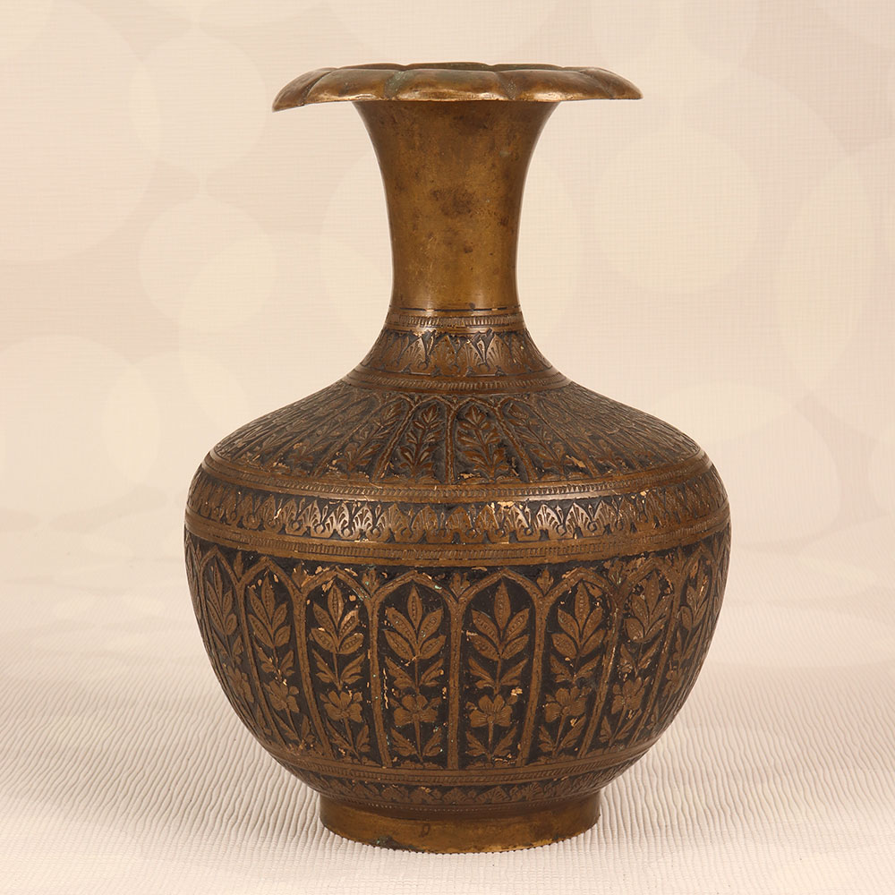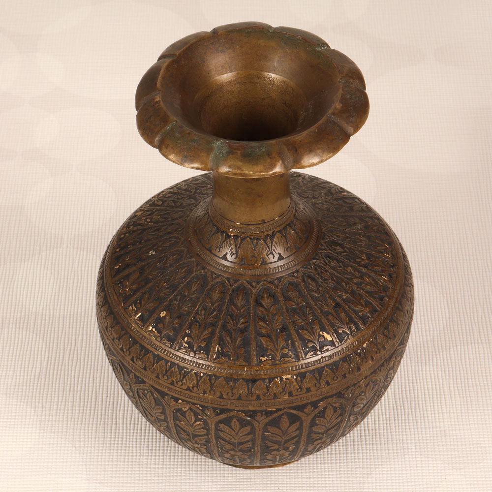 Decorate your living room with the timeless elegance of our Vintage Brass Flower Pot that is meticulously handcrafted by talented artisans from the vibrant city of Hyderabad, India. This exquisite piece boasts a stunning combination of brass and black enamel carving, showcasing intricate craftsmanship that reflects the rich cultural heritage of the region. The flower pot features an antique brown finish, adding a touch of nostalgia and sophistication to any environment. Its high-quality brass construction ensures durability and a lasting allure. Versatile in its charm, this piece is suitable for various settings, including homes, offices, restaurants, hotels, or cafes, serving as a captivating indoor flower pot. Beyond its decorative appeal, this vintage brass flower pot is a coveted addition to any collector's trove, seamlessly blending the old-world charm with contemporary aesthetics. Its unique design makes it a thoughtful and memorable gift for your loved ones on special, festive, or auspicious occasions, carrying the essence of tradition and craftsmanship.