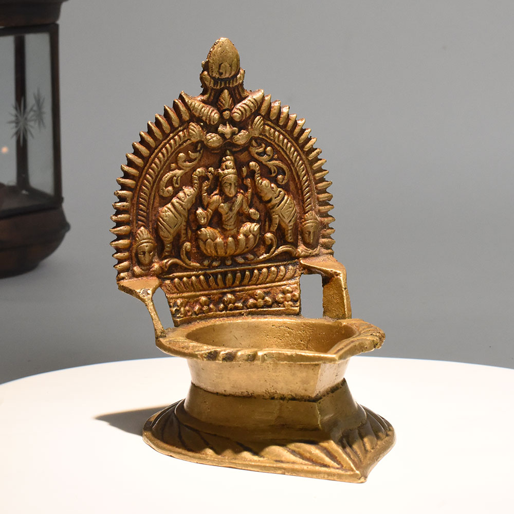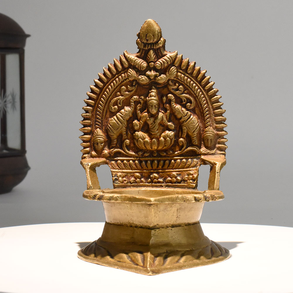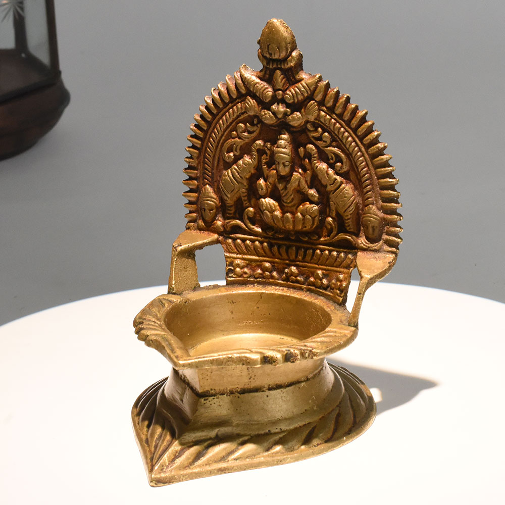 - Vintage style brass Gajalakshmi lamp for rituals