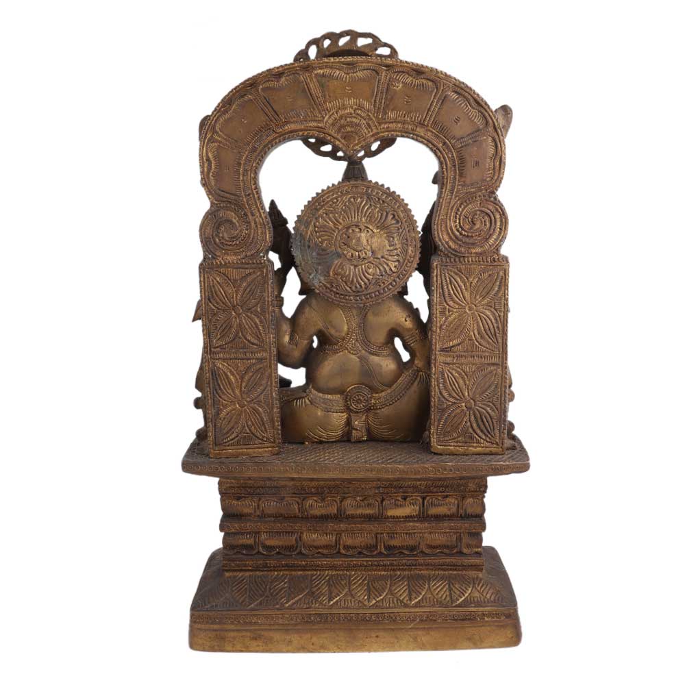 Vintage Brass Ganesha on His Aasan Sun God prabhavali