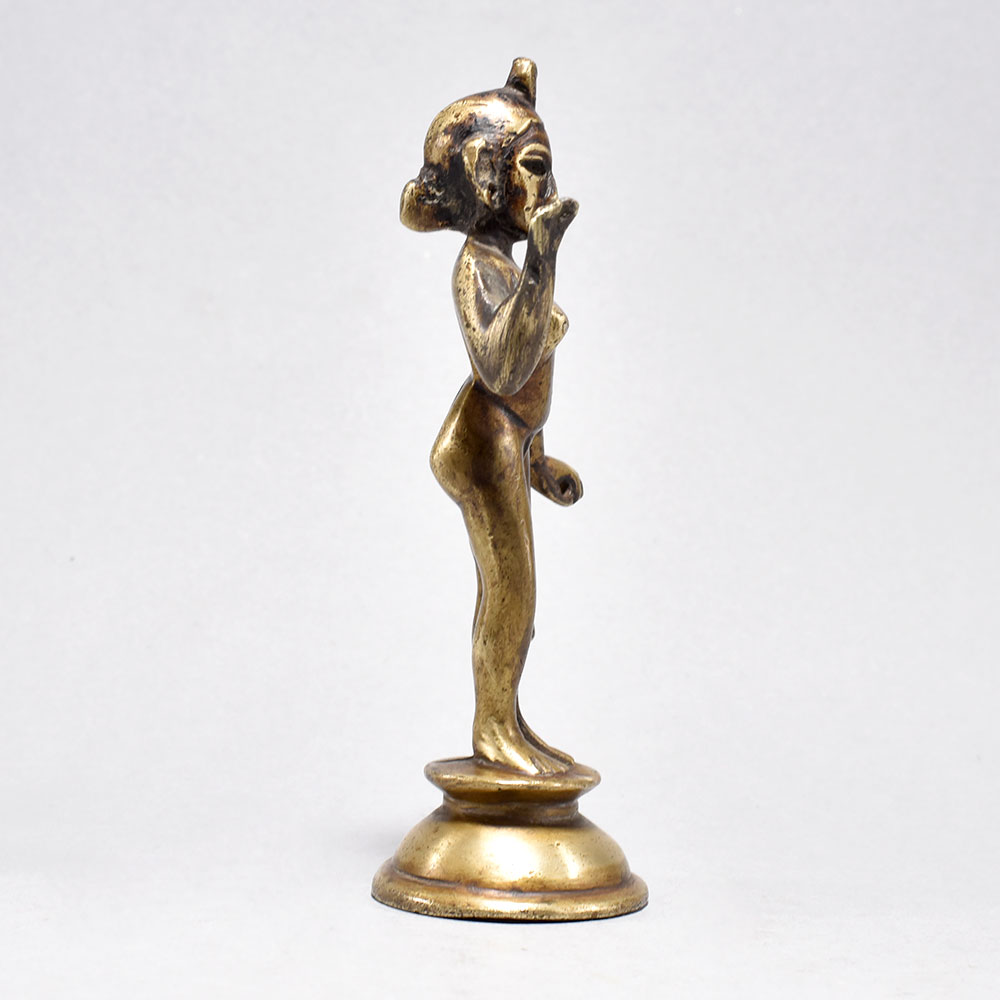 Discover the captivating essence of ancient Hindu spirituality with this exquisite Vintage Brass Standing Figure.This striking brass figure is a testament to the rich cultural heritage of India. The skillfully sculpted deity stands tall, her serene expression and elegant pose radiating an aura of sacred power. Crafted with meticulous attention to detail, this piece captures the essence of Hindu spirituality, inviting you to connect with timeless traditions. Display this stunning work of art in your home to infuse your space with the captivating energy of the divine feminine. Handcrafted in northern India, showcasing unparalleled artistry Intricate details and graceful pose evoke the divine feminine Made of durable, high-quality brass for enduring beauty This unique handcrafted piece is a testament to traditional artistry, blending functionality with beauty and making it a treasured collectible for years to come. This unique handcrafted piece is a testament to traditional artistry, blending functionality with beauty and making it a treasured collectible for years to come.