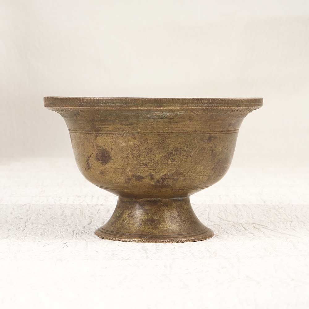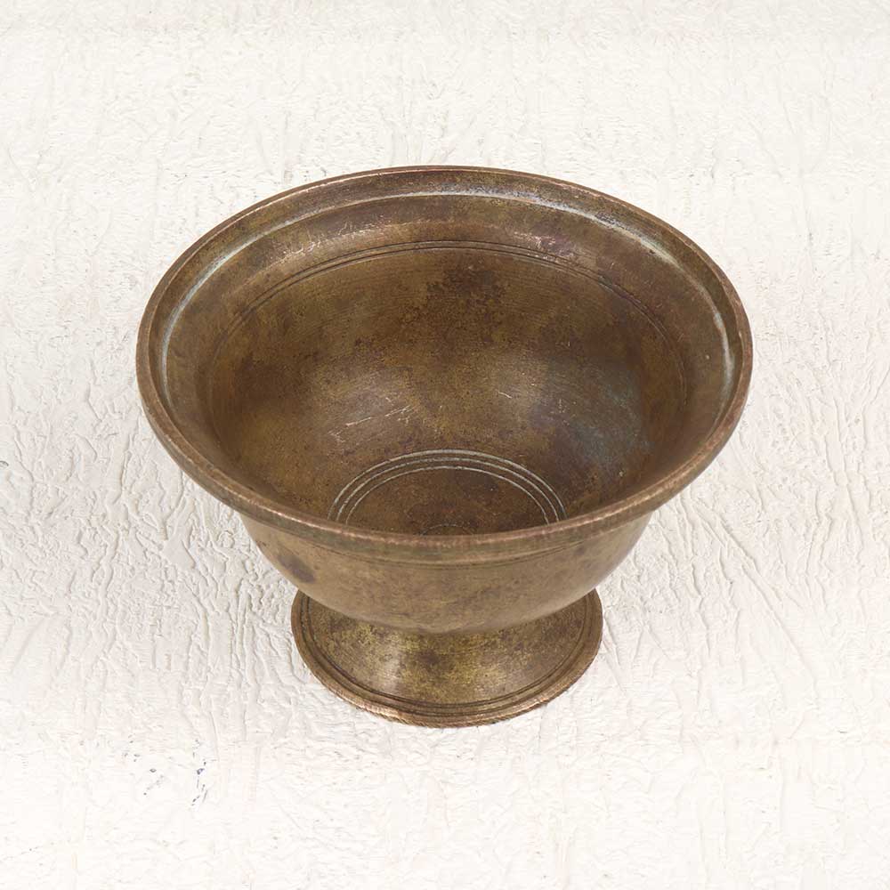 Add a touch of vintage devotion to your puja with this beautiful brass holy kumkum cup. Handcrafted from brass in a classic South Indian style, this kumkum cup features a plain brown finish that highlights the natural shine of the metal. This holy kumkum cup is ideal for devotees who want to connect with tradition during their puja. The cup allows you to take just the right amount of kumkum powder to make the perfect tilak. It's also perfect for holding the powder during aarti. For devotees who appreciate the craftsmanship of vintage Indian artefacts, this kumkum cup makes a meaningful addition to your puja space. Its simplicity evokes tradition and its elegant brass construction will lend beauty to your rituals for years to come. Bring a piece of heritage to your worship and welcome the divine into your home.