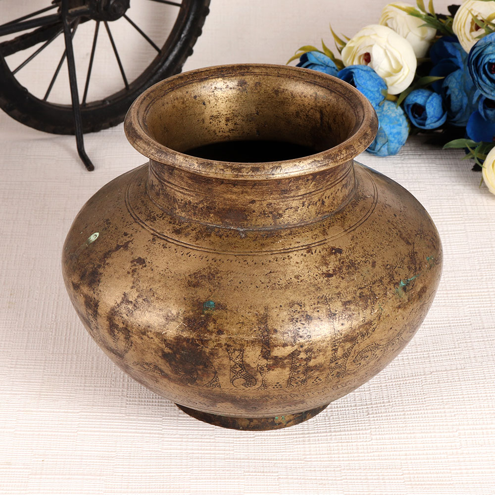Buy a vintage water pot online from our website that will make a remarkable impression in interior design. It features engravings done by highly skilled and experienced Indian craftsmen using traditional methods. As it is made of high quality brass, it is a real eye-catcher. Place this exquisite decorative piece on the table, shelf or altar and it will become a center of attraction for your guests and visitors. It has a vintage style look that will add a vintage touch to the interiors of your restaurant or hotel. Decorate your home or office with this incredible lota or give it as a gift to your loved ones for a special or festive occasion.