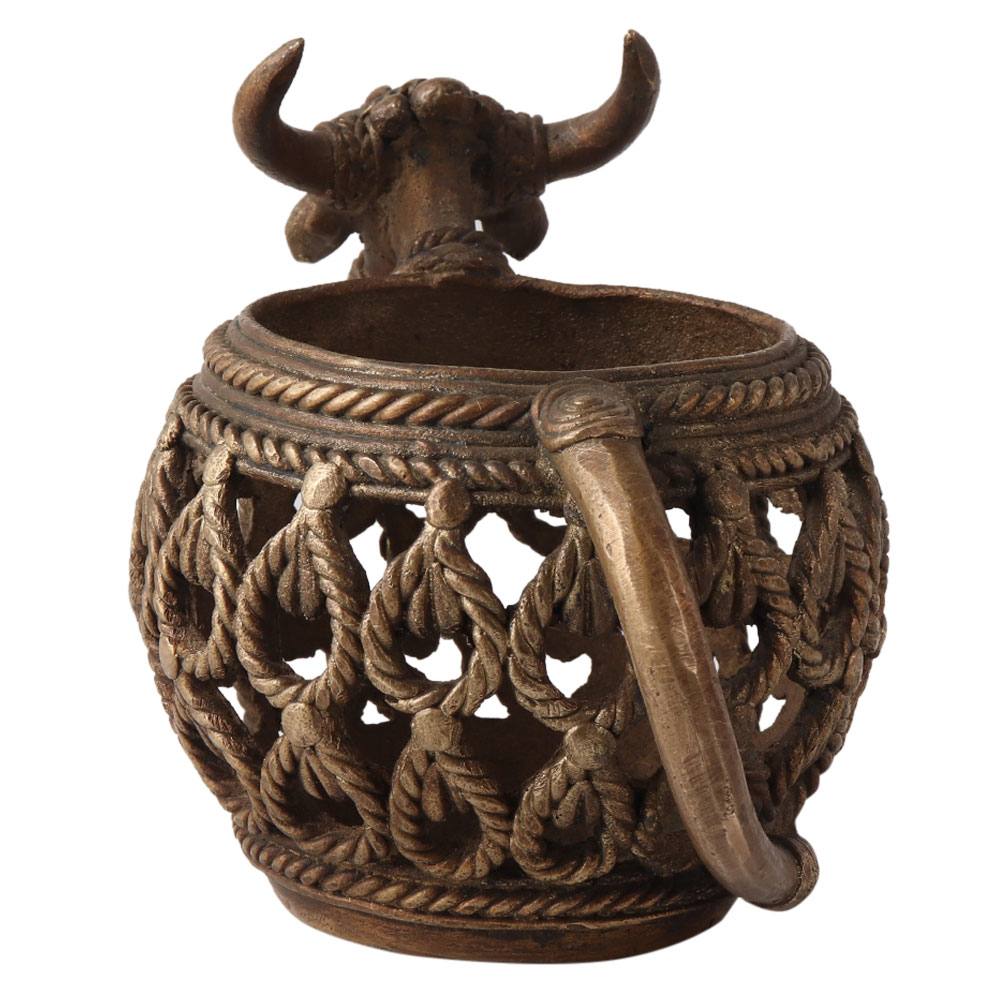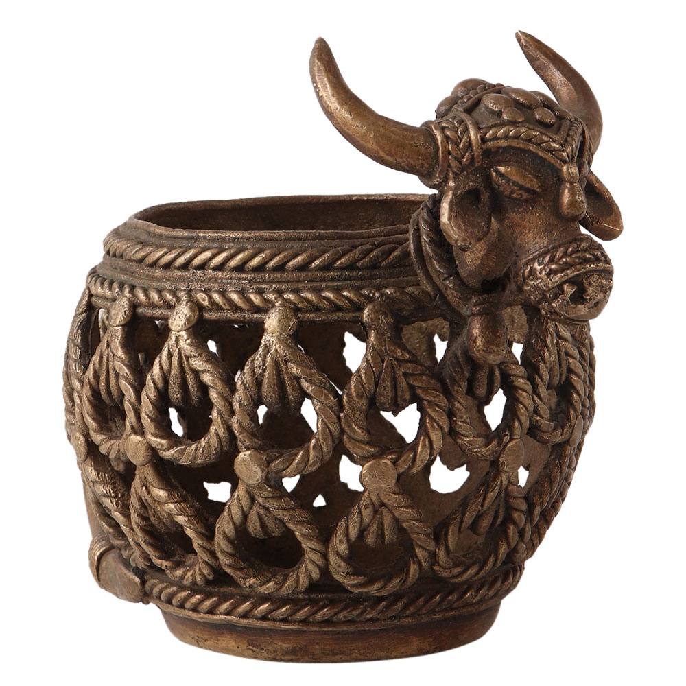 Traditionally handcrafted from high quality brass, this Nandi head pot has long been a great decorative piece for the home. With its jali work, this pot is suitable for home, restaurant, office and hotel decoration. Nandi is the sacred bull of the Hindu Deity Lord Shiva and is revered in Indian temples. Nandi statue at home spreads positive energy and protects the house from evil. You can use this pot to store small items in it or use it as a pen holder. A perfect gift for your near and dear ones.