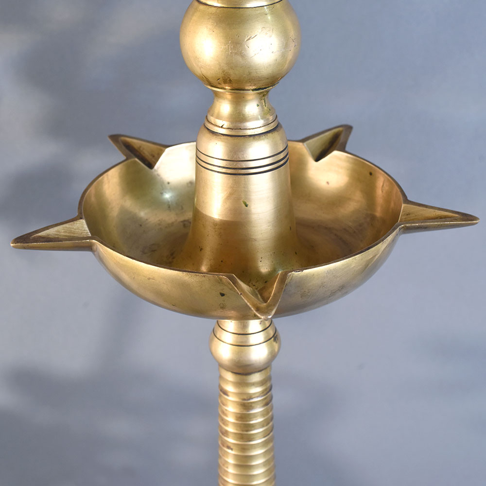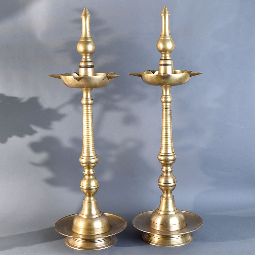 - Vintage brass oil lamp pair with Lingam from South Kerala art