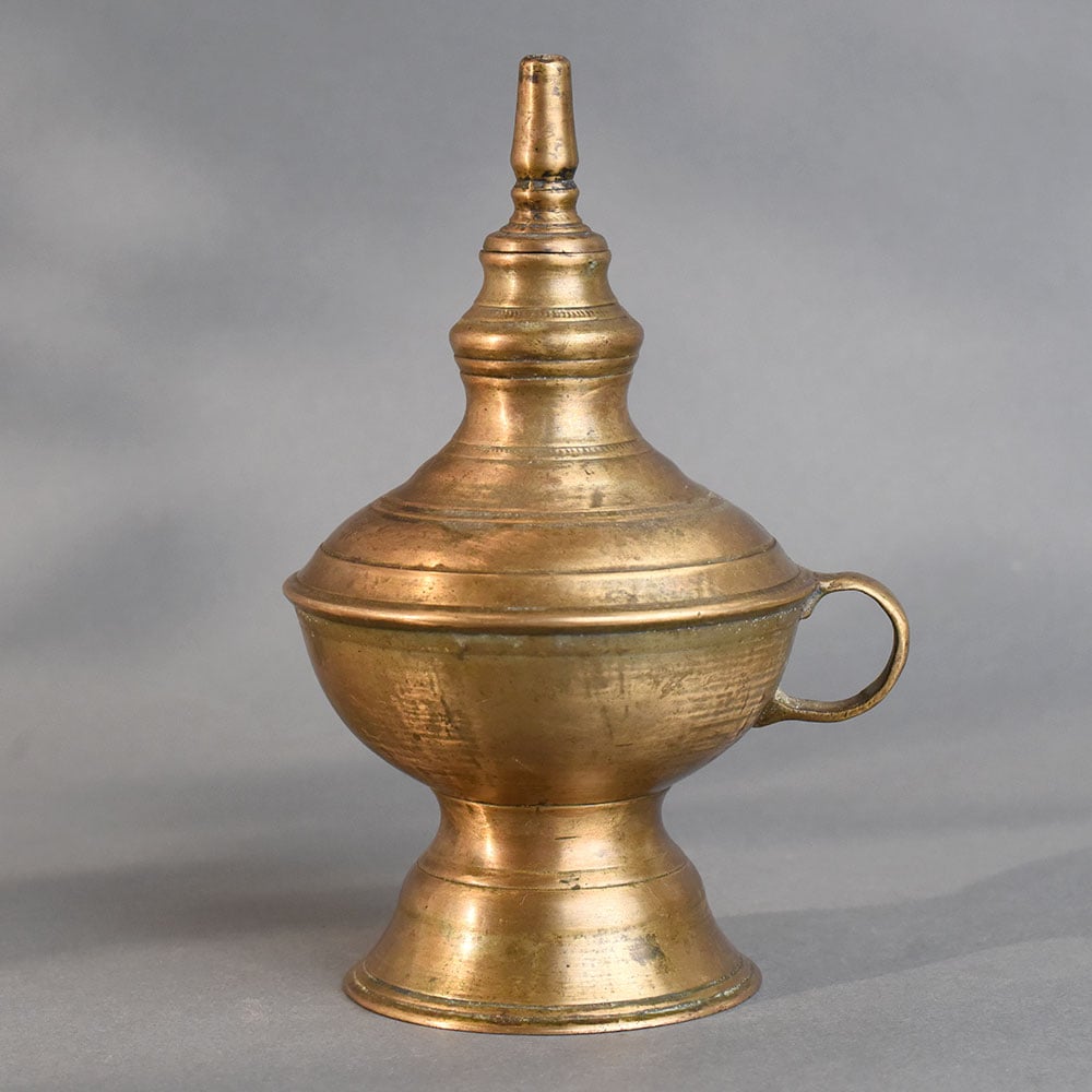 - Vintage brass oil lamp with handle handcrafted in Central India