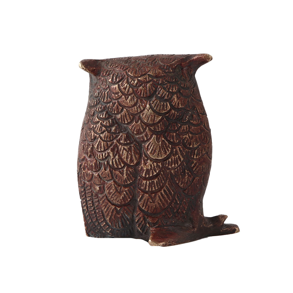The brass owl represents intelligence, wit, mystery, and power.  Because it is a nocturnal creature, it represents inner knowledge, psychic ability, and intuition. In Feng Shui, the owl represents wisdom and protection from evil. Owl is associated with Athena, the Greek Goddess of wisdom and Sscience, due to its large eyes and exceptional night vision. Buddhists believe that the bird is a self-sufficient seeker of truth. The owl is the vehicle of Lakshmi, the Goddess of Wealth in Hinduism. Other cultures believe that the owl protects against evil spirits and illness. Keep the brass owl with coins in your home for good fortune and abundance.