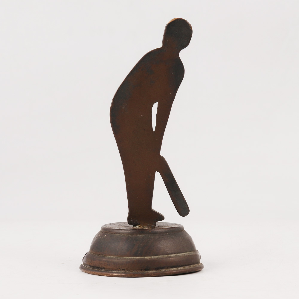 Behold the exquisite beauty of the Brass Cricket Player Statue, a masterpiece that captures the essence of the beloved sport in all its glory. Crafted from high-quality brass by skilled artisans, this remarkable sculpture stands proudly on a platform, frozen in time as a player eagerly awaits the incoming ball, bat in hand, ready to take on the challenge. The dark finish lends an air of sophistication and elegance to the statue, accentuating the intricate details and craftsmanship. Each stroke of the artisan's hand is evident, creating a lifelike representation that stirs emotions and memories of cricketing moments. Versatile in its purpose, this brass statue serves as a striking decorative piece that adds a touch of elegance to any setting. Place it in your living room, study, or office to showcase your passion for cricket and appreciation for art. Alternatively, this magnificent piece finds its place in museum collections, where its historical significance and artistry will be celebrated. Beyond being a symbol of admiration and fandom, this statue makes for a thoughtful and cherished gift. Present it to your loved ones on special or festive occasions, expressing your affection and acknowledging their love for cricket.