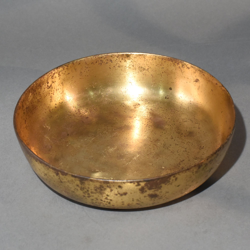 This vintage brass pot bowl is a quiet yet powerful expression of Himalayan ritual art, shaped by generations of traditional metalworking practices. Crafted from solid brass, the bowl carries a naturally aged patina that reflects years of devotional use and careful handling. Its wide, open form makes it ideal for holding fresh flowers, sacred water, or herbal infusions during temple rituals and home puja ceremonies. In Himalayan traditions, brass vessels are deeply symbolic, believed to retain spiritual energy and enhance the purity of offerings. This bowls gently curved rim and balanced depth allow it to be used for ritual god bathing, where idols are ceremonially cleansed with water, milk, or floral essence as an act of reverence. When used as a flower bowl, it beautifully frames loose marigolds, lotus petals, or seasonal blooms, creating a serene focal point for altars and meditation corners. Beyond rituals, this brass bowl also functions as a timeless decorative accent. Placed on a wooden console, prayer table, or stone platform, it adds warmth and cultural depth to interiors inspired by heritage or minimal aesthetics. The visible marks and subtle surface variations are signs of authenticity, narrating a story of tradition, faith, and Himalayan craftsmanship.