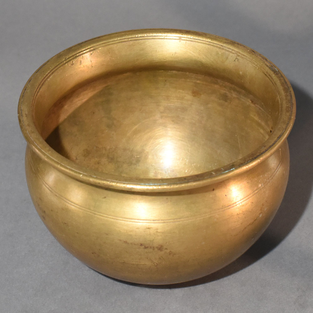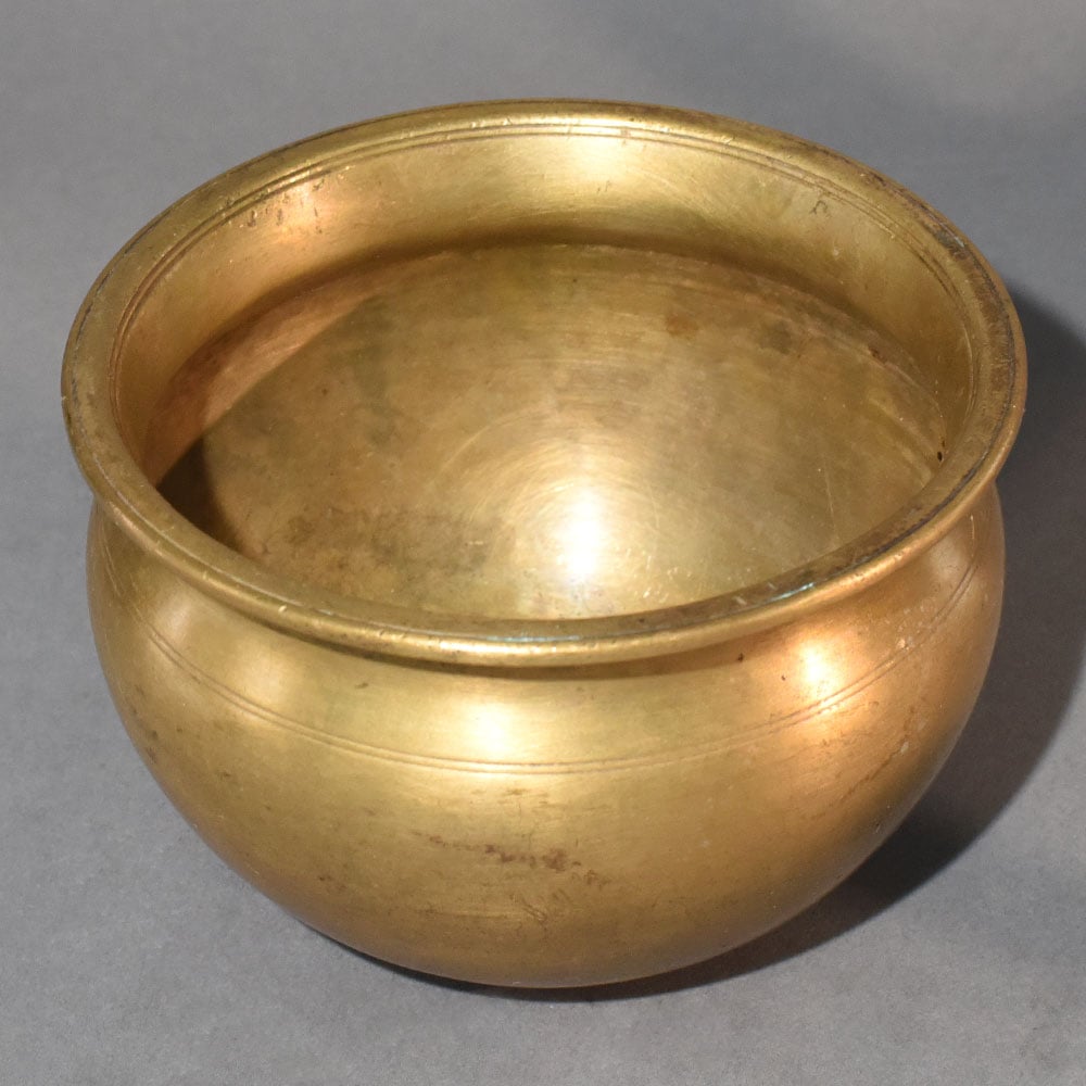 This vintage brass pot planter is a quiet expression of Himalayan artistry, shaped by hand and time. Crafted from solid brass, its rounded form and gently flared rim reflect the utilitarian yet spiritual design language found across Himalayan homes and monasteries. Traditionally used to hold water, flowers, or sacred offerings, such vessels were central to daily rituals, temple decor, and seasonal celebrations. The surface carries a warm aged patina developed naturally over decades, giving the pot a soft golden glow with subtle tonal variations. Minor marks and imperfections are not flaws but records of age and use, making each piece unique. When used as a flower planter, the brass beautifully contrasts fresh blooms, enhancing their color and presence. Placed in a prayer corner, entryway, or living space, it adds a grounded, soulful charm that modern decor often lacks. This pot works equally well as a decorative planter for marigolds and lotus flowers, a vessel for floating blossoms during festivals, or as a standalone accent piece that celebrates Indian heritage. Its weight and balance ensure stability, while its timeless form blends seamlessly into both traditional and contemporary interiors.