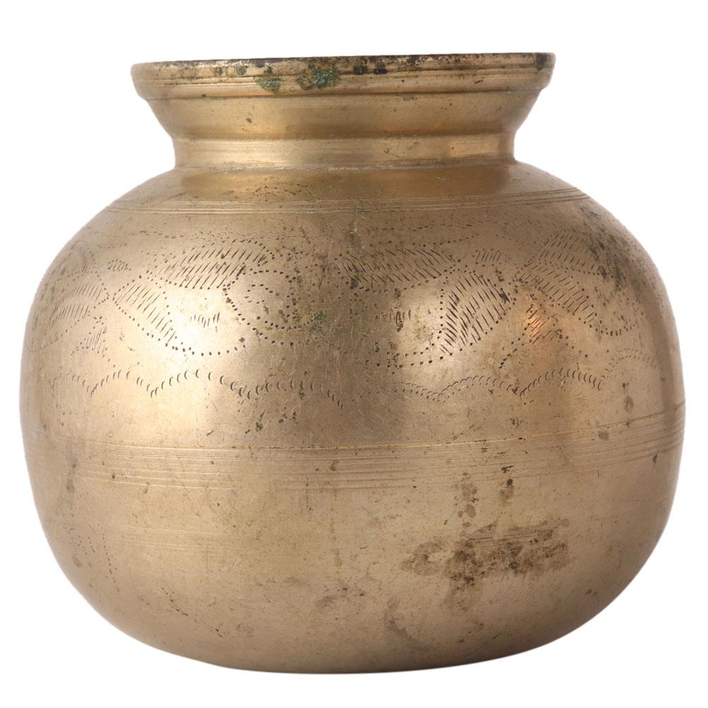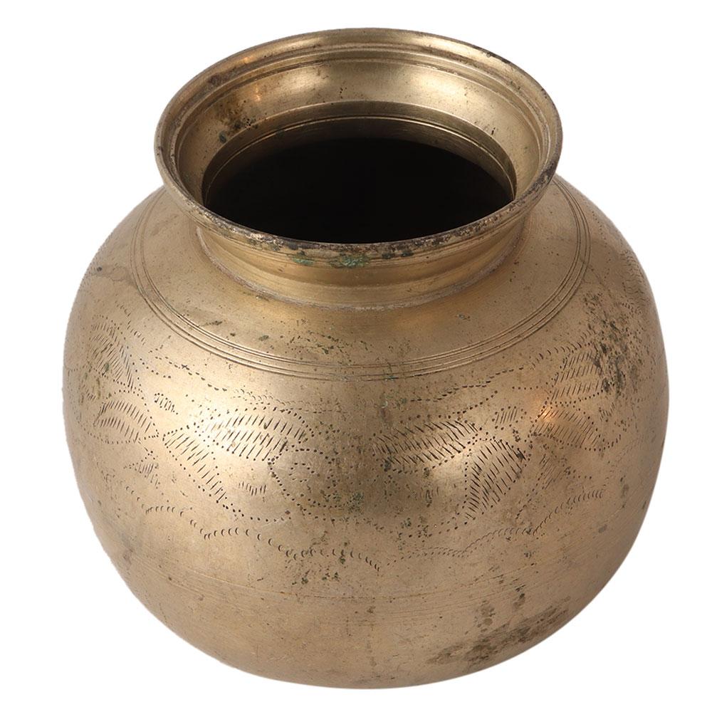 A Vintage Brass Pot with a beautiful pattern. An amazing carving by an Indian craftsman. It can be used in wedding ceremonies.