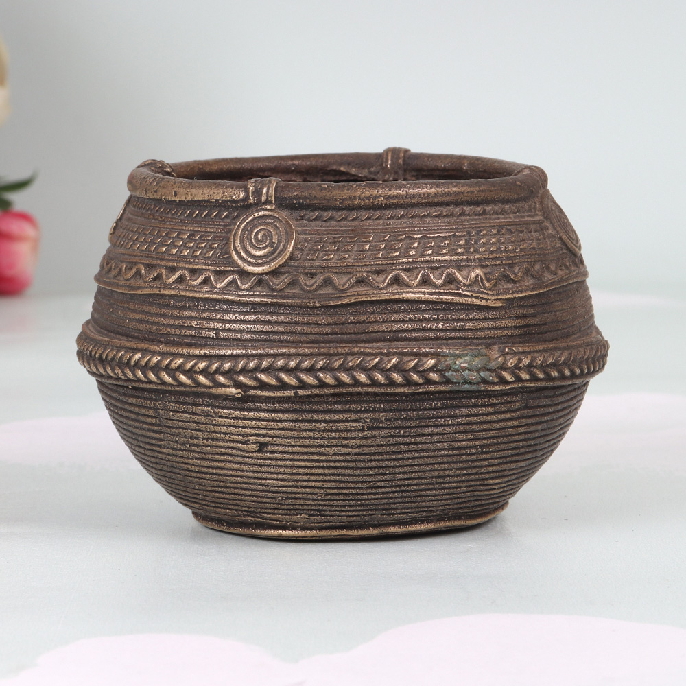 Unlock the secrets of traditional Indian cooking with this captivating vintage brass rice measurement bowl from Odisha Art. Meticulously crafted, this stunning piece not only serves as a functional tool but also doubles as a mesmerizing decorative accent for your home. Imagine the joy of reconnecting with the culinary traditions of the past. This brass bowl allows you to measure your ingredients with the same care and attention that generations of Indian cooks have. Whether you're preparing a fragrant biryani or a simple dal, this timeless tool will elevate your cooking experience, infusing each dish with the essence of Odisha's rich cultural heritage. But the beauty of this bowl extends beyond the kitchen. Its captivating design and warm metallic hue make it a stunning addition to any home decor. Display it on your kitchen counter, dining table, or bookshelf to spark conversations and admiration from your guests. Embrace the charm of the past and let this vintage treasure bring a touch of elegance to your space.