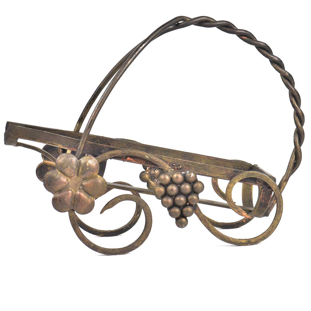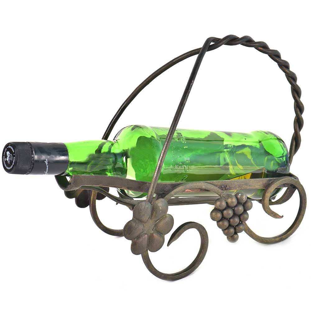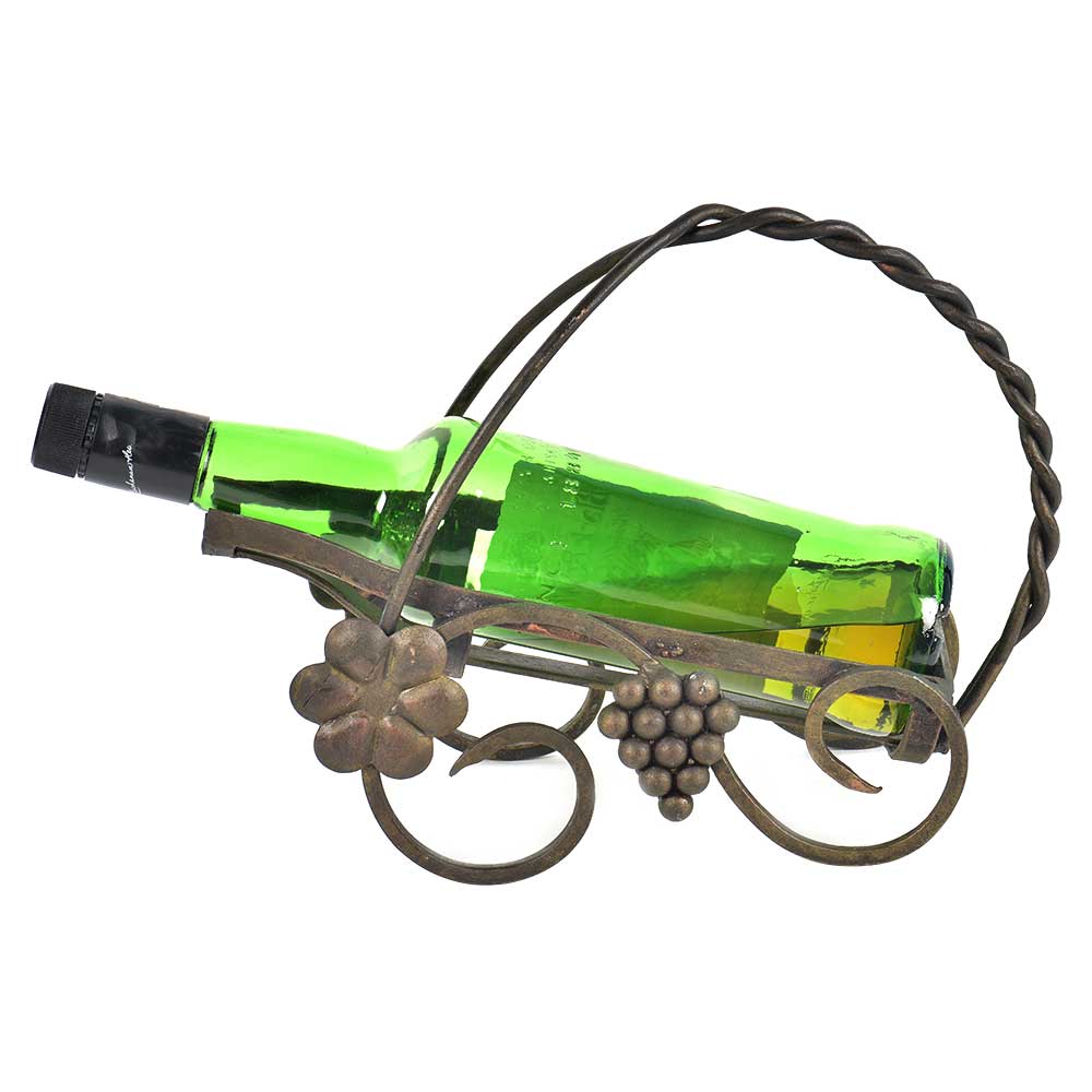Perfect for your home decor or a vintage wedding.The carrier is made of patinated brass and is in the shape of a basket and a bunch of grape also made of brass is used for decoration . Wine is for photography purposes only and not included.