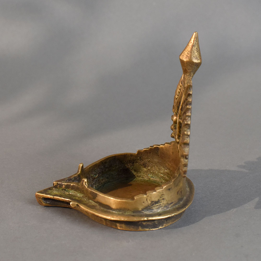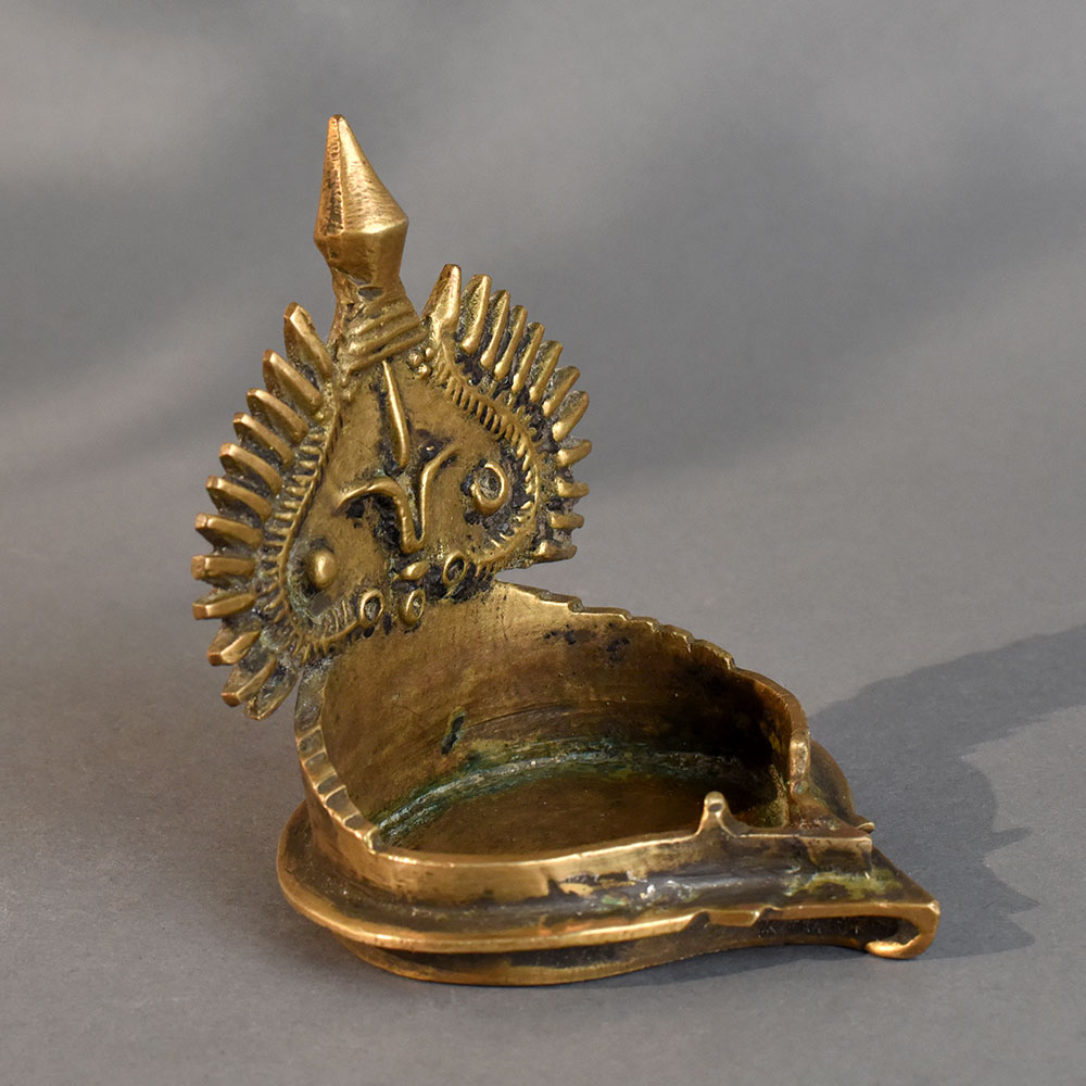 - Handcrafted vintage brass diya with intricate detailing