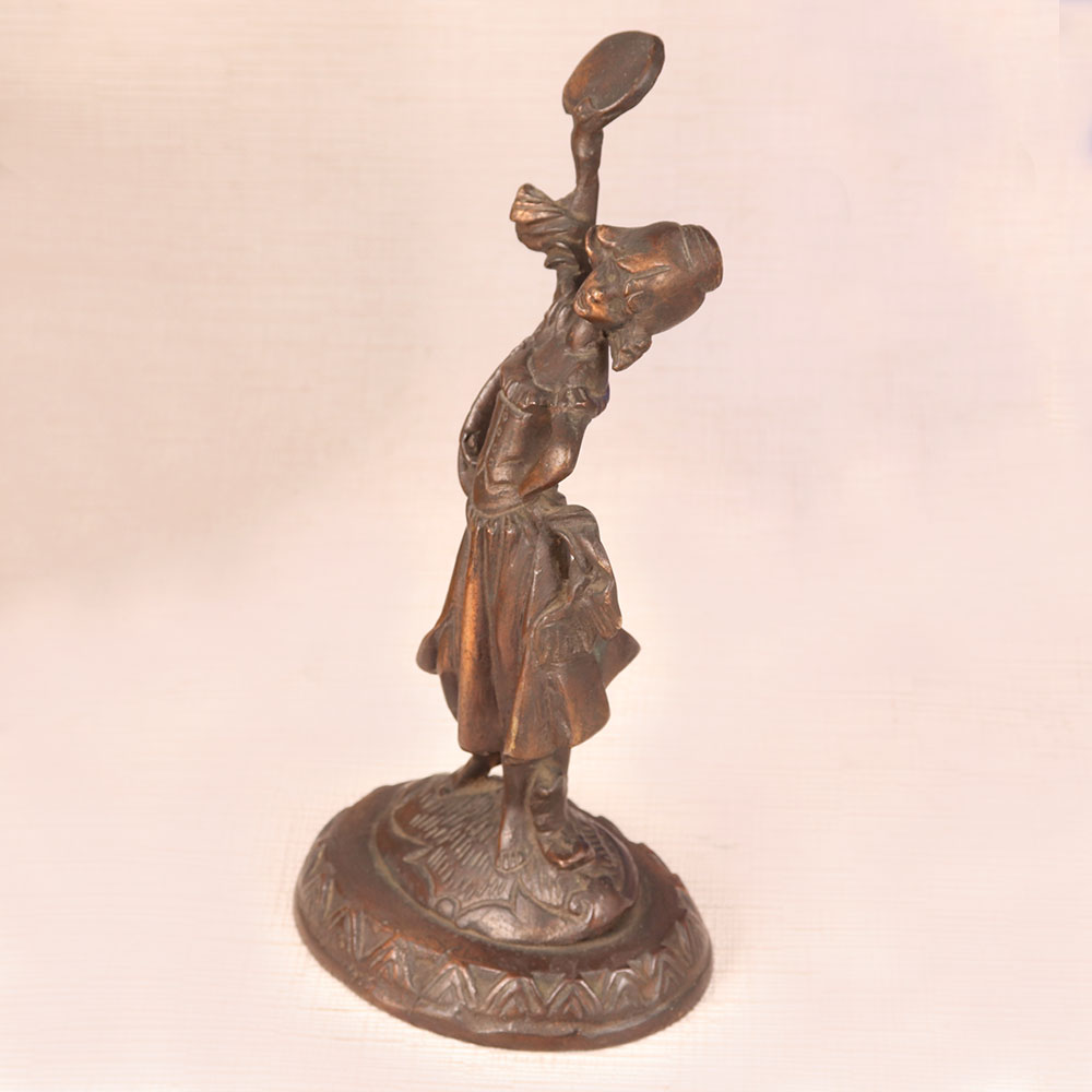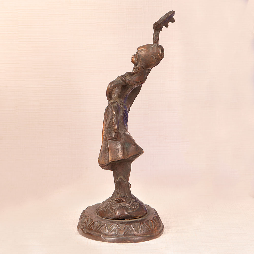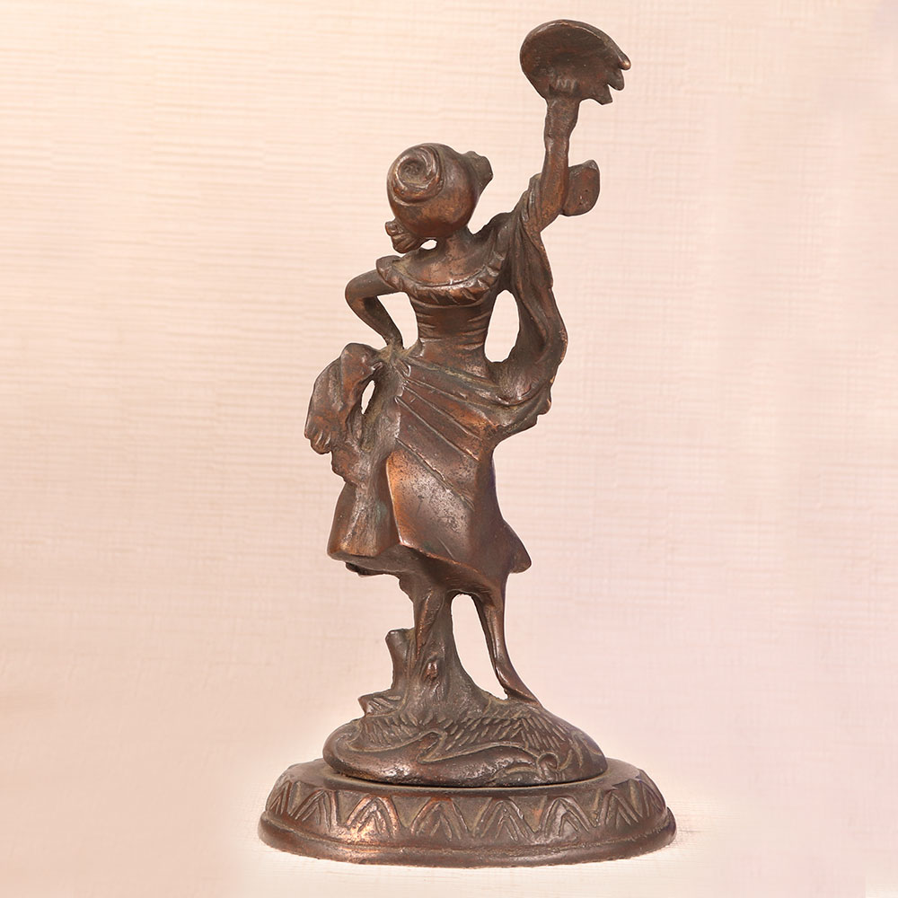 This Vintage Brass Lady Statue is a captivating piece of artistry crafted in the English Art tradition. Handmade by highly skilled and experienced artisans with meticulous attention to detail, this masterpiece showcases a timeless charm that transcends eras. Bathed in an antique brown finish, it exudes warmth and nostalgia, adding a touch of vintage sophistication to any space. Made from high-quality brass, this exquisite lady stands frozen in a graceful pose, her contours capturing the essence of a bygone era. Versatile in its placement, it seamlessly complements the ambiance of homes, offices, restaurants, hotels, shops, or cafes, enhancing their aesthetic allure. A treasure for vintage collectors, this statue is equally perfect for exhibition displays, where it can transport viewers to the romanticism of yesteryears. Furthermore, it makes for an ideal gift to express your love and thoughtfulness on special, festive, or auspicious occasions, leaving a lasting impression on your loved ones.