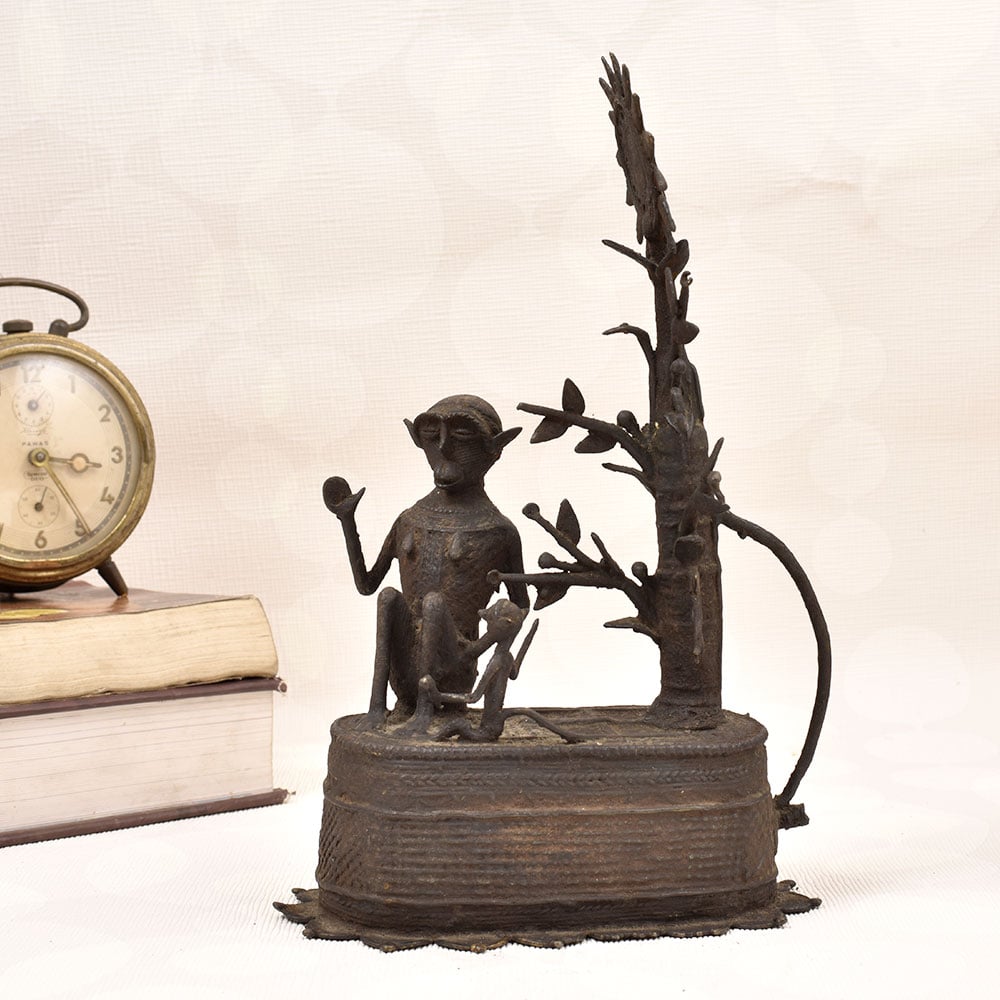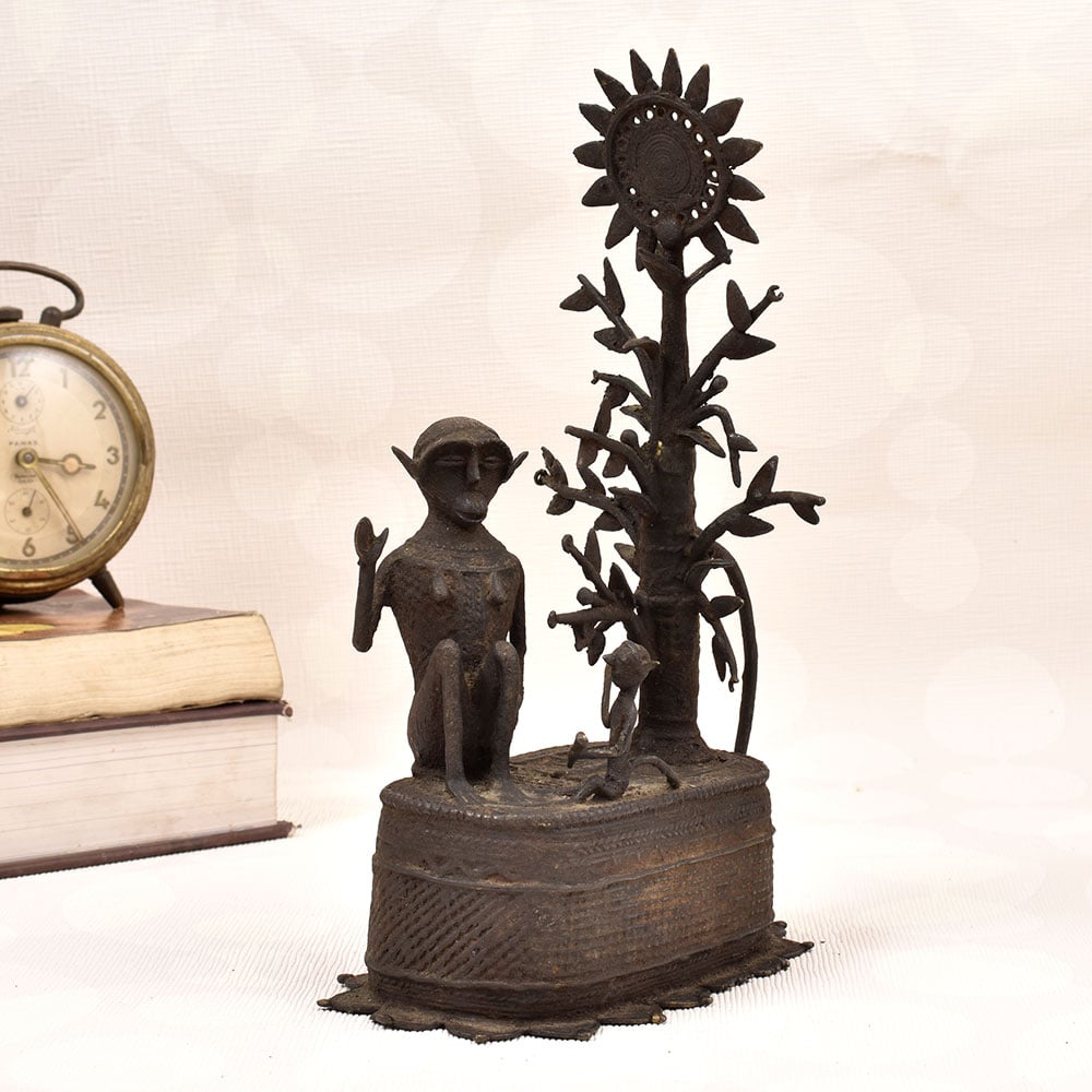 Unleash the allure of ancient tribal artistry with this striking brass statue featuring two monkeys sitting peacefully under a tree. Crafted with meticulous attention to detail, this vintage-inspired piece exudes an aura of timeless elegance that will captivate all who lay eyes on it. This brass monkey statue is more than just a decorative accent - it's a visual masterpiece that tells a story of harmony and interconnectedness. Place it in your living room, office, or study to infuse the space with a sense of tranquility and worldly wonder. As you gaze upon the tranquil scene, you'll be transported to a realm where the boundaries between man and nature blur, leaving you feeling grounded and inspired. Whether you're a collector of tribal art or simply seeking to elevate your décor, this brass monkey statue is a must-have addition to your home. Its timeless appeal and captivating design will leave a lasting impression on all who encounter it, making it the perfect conversation piece and a treasured heirloom for generations to come.
